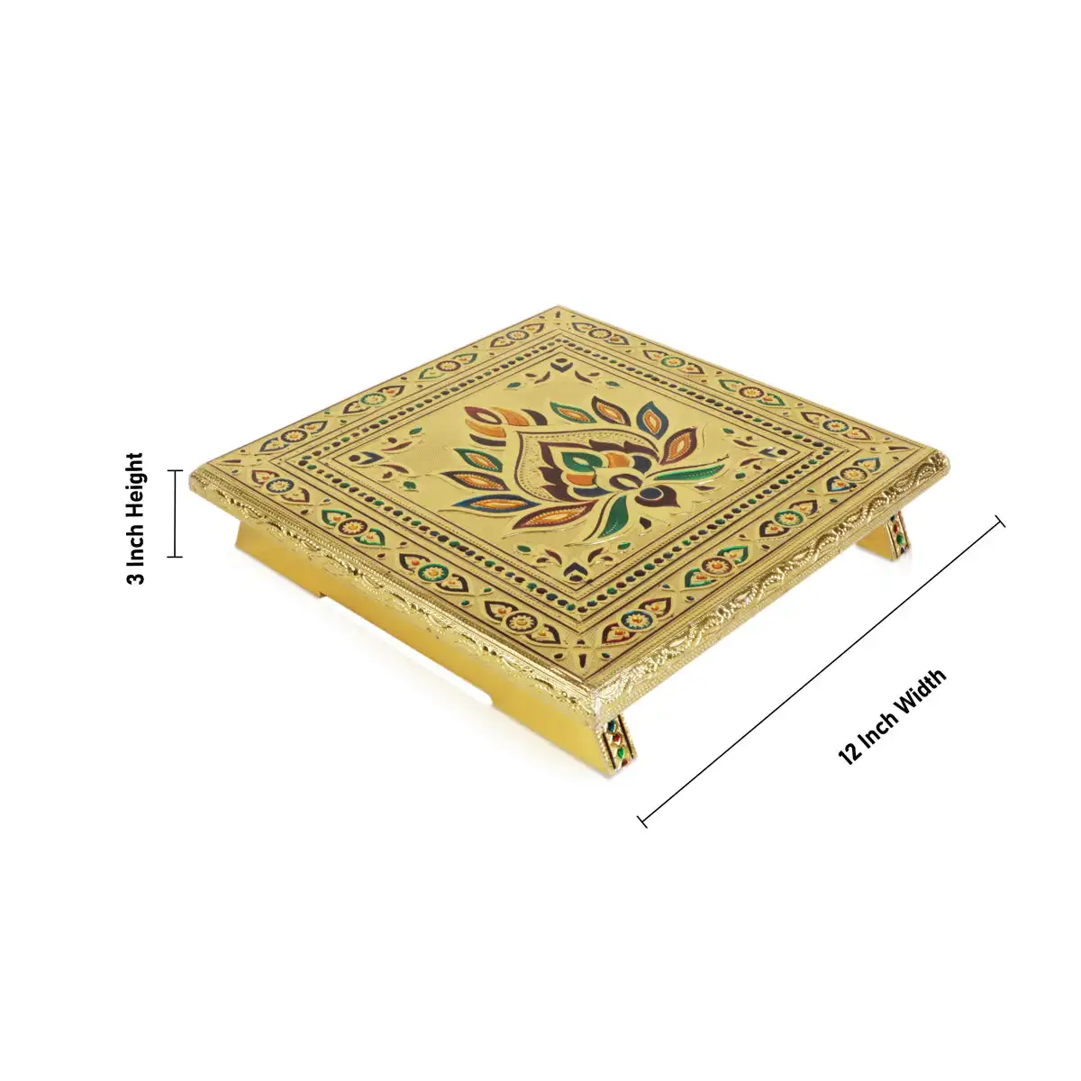 Bajot - 12 x 12 Inches | Chowki/ Silver & Gold Finish Manai/ Patla for Pooja