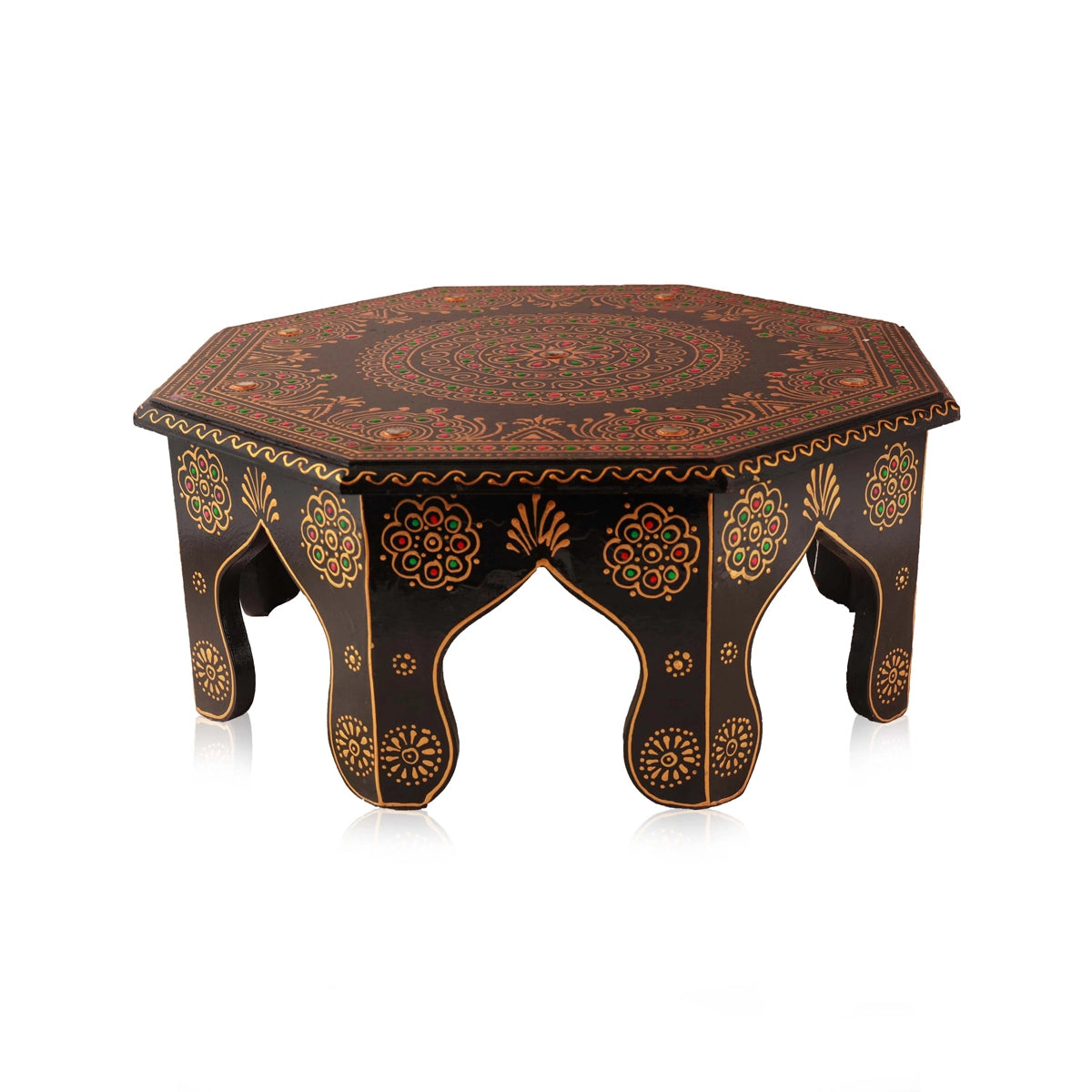 Wooden Chowki - 12 Inches | Hexagon Shape Bajot/ Manai/ Pooja Chowki for Home