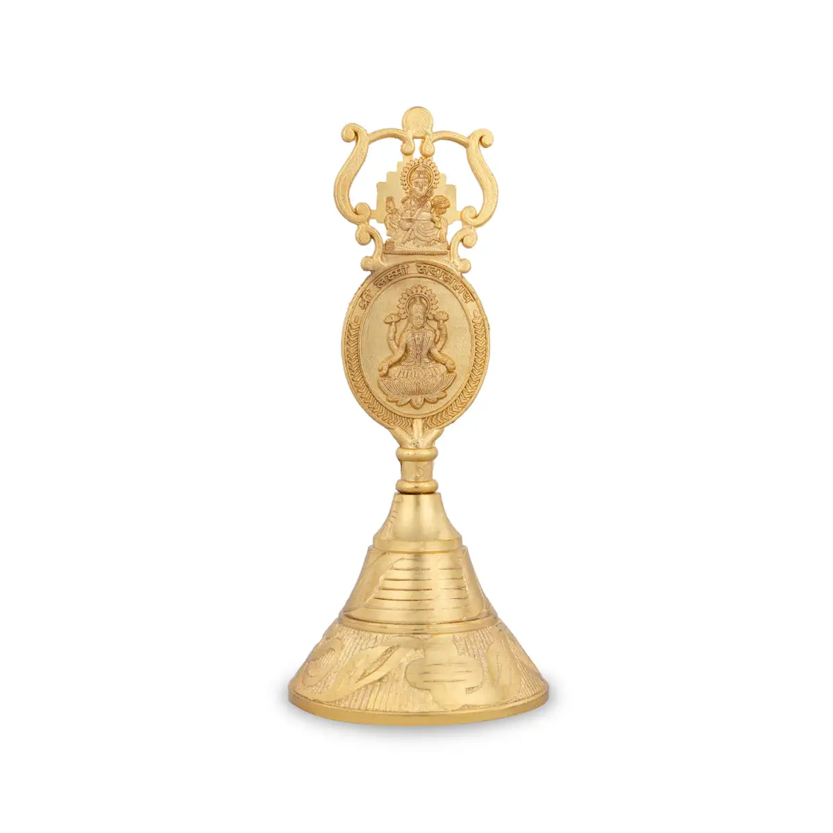 Hand Bell With Kuber Lakshmi & Ganesh Design Handle - 5.5 x 2.5 Inches | Zinc Ghanti/ Pooja Bell for Home