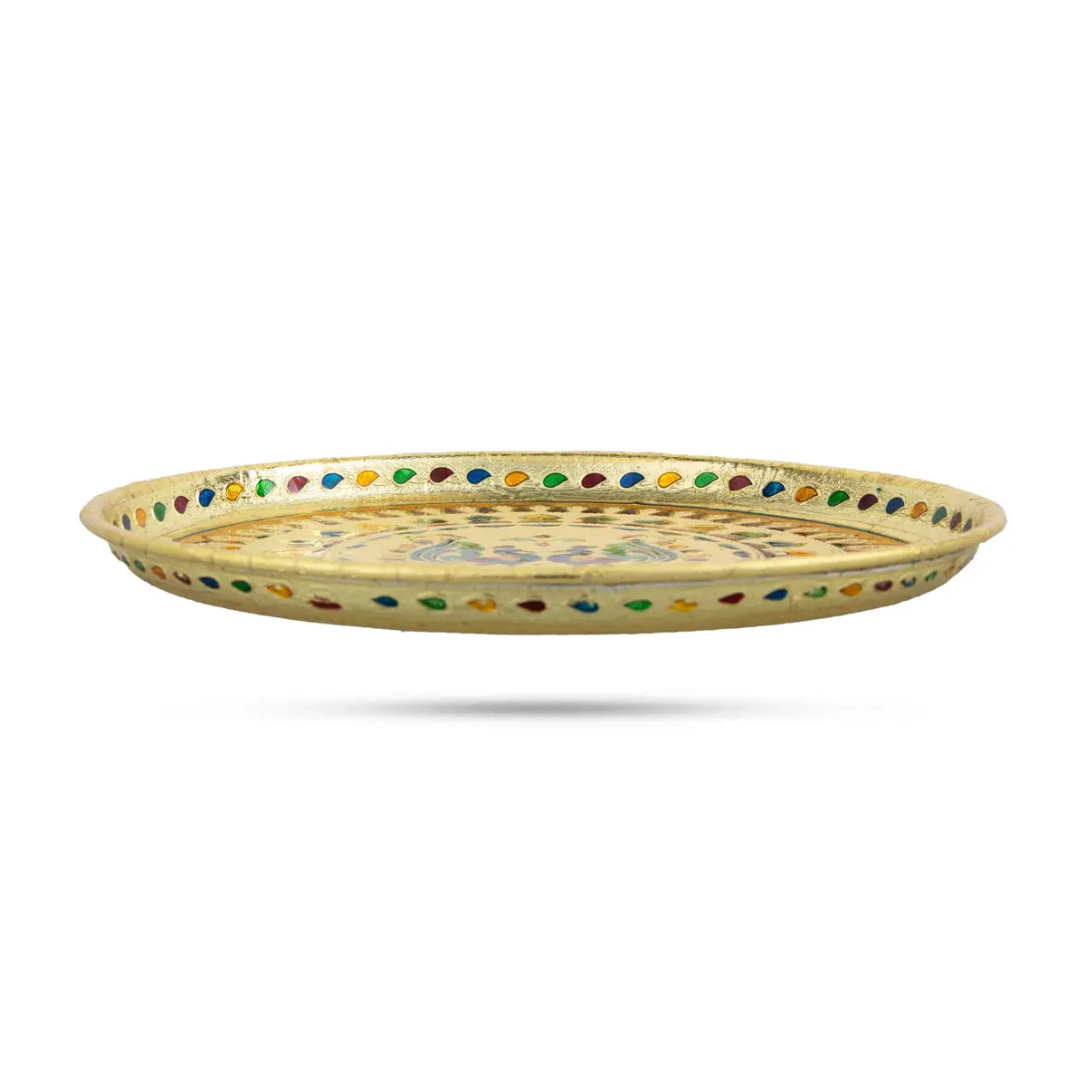 Stainless Steel Plate - 12 Inches | Meenakari Design Plate/ Pooja Plate for Home/ 510 Gms Approx