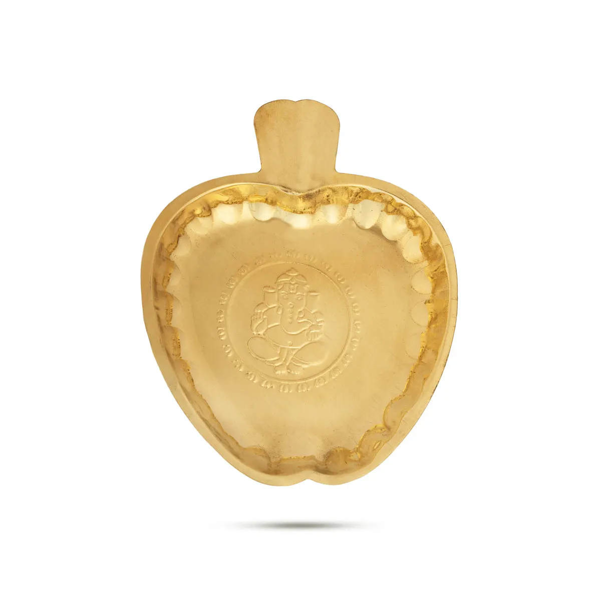 Brass Plate - 8 x 6 Inches | Pooja Plate/ Leaf Design Thali Plate for Home/ 87 Gms Approx