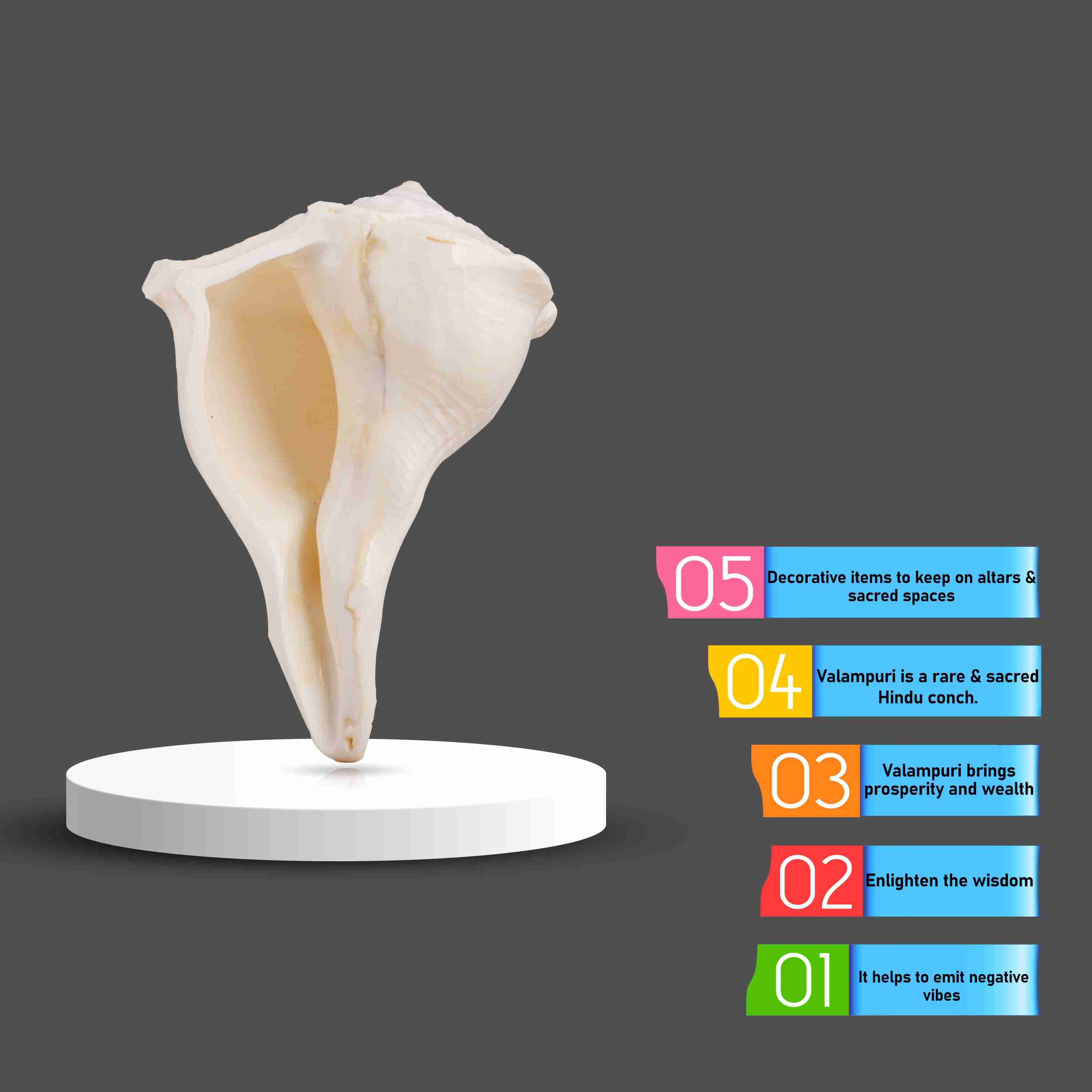 Right Hand Shankh - 3 x 6.5 Inches | Valampuri Sangu/ Dakshinavarti Shankh for Pooja