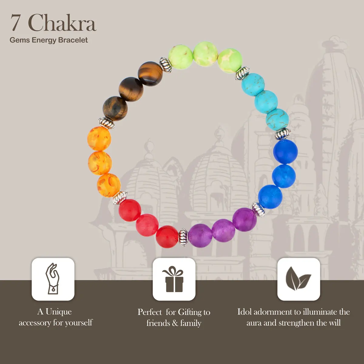 7 Chakra Bracelet Set - 2.5 Inches | Chakra Bead Bracelet/ Chakra Gemstone Bracelet/ 35 Gms Approx