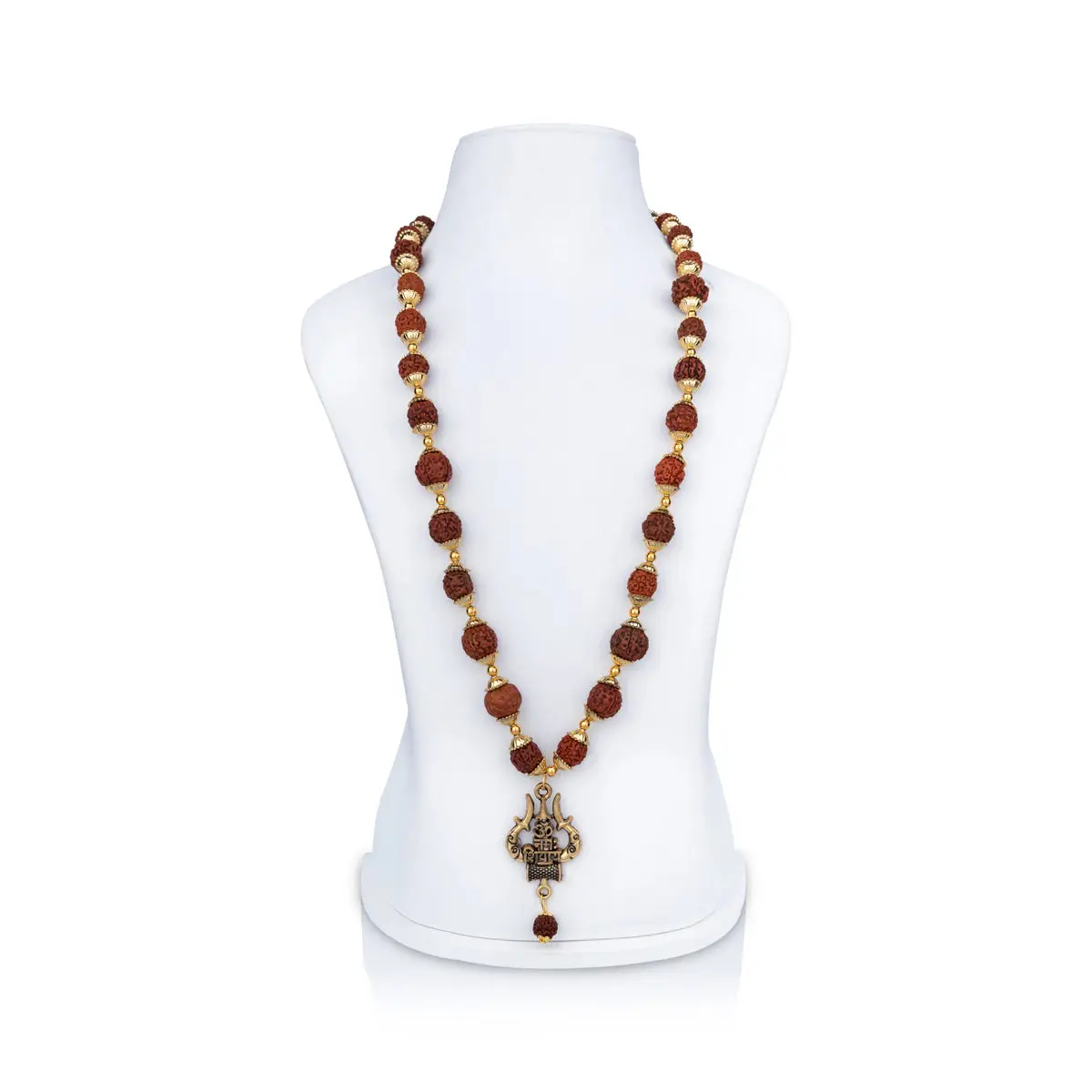 Rudraksha Mala With Trishul Locket - 17.5 Inches | Ruthratcham Malai With Gold Polish Cup for Meditation