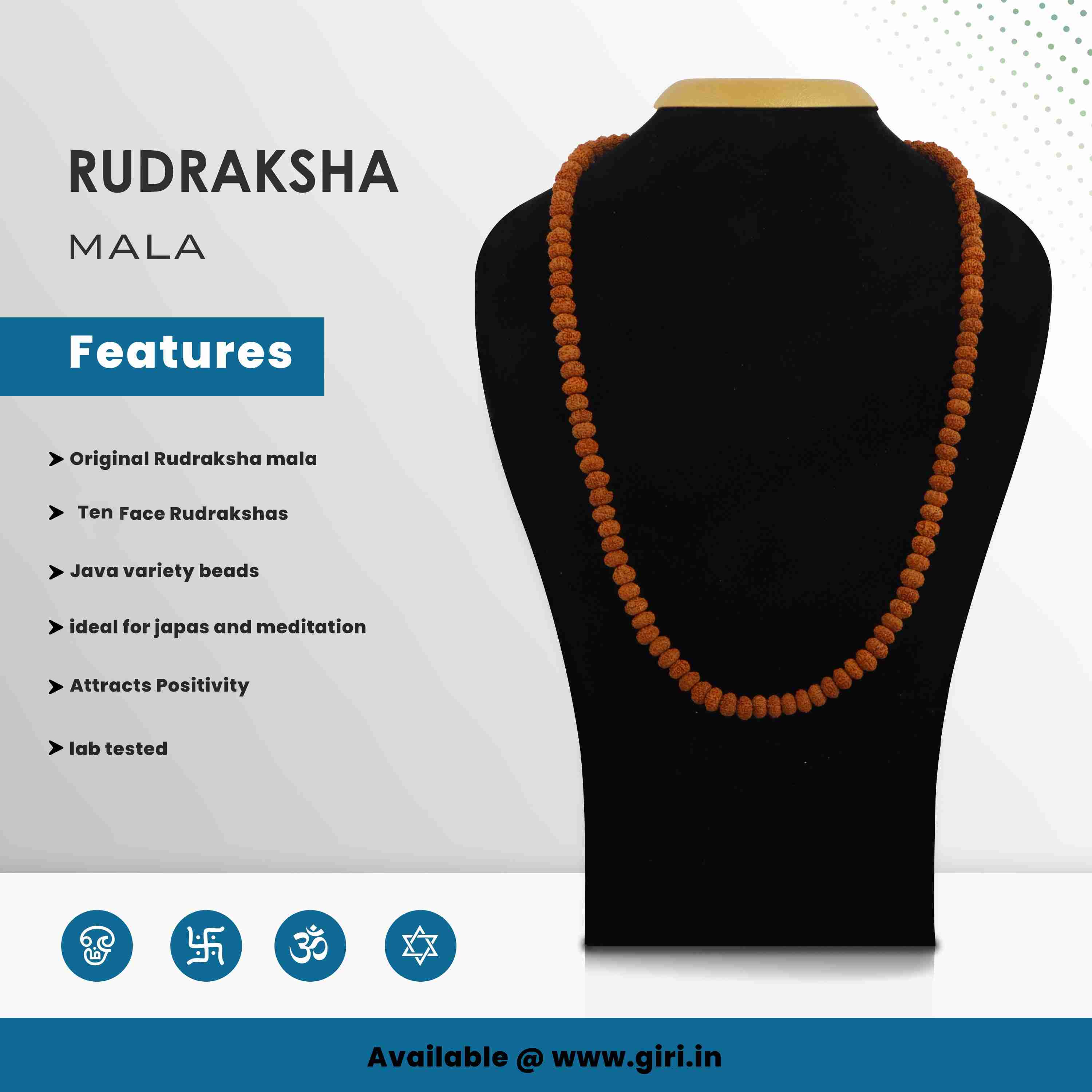 Rudraksha Mala | 10 Mukhi Ruthratcham Malai/ Java Rudraksha Mala Beads for Men & Women