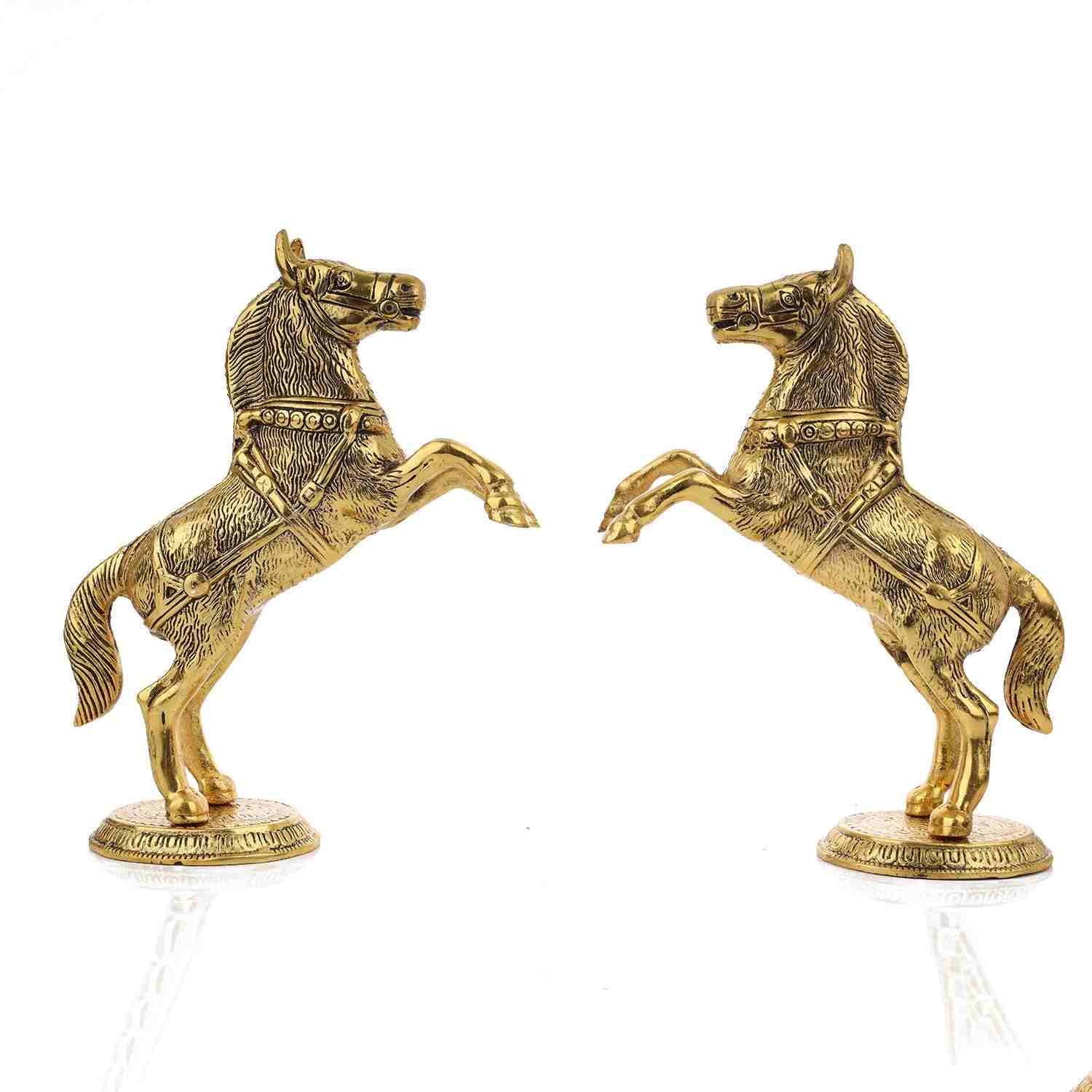 Horse Statue Set - 10 Inches | Aluminium Material/ Horse Sculpture/ Horse Idol for Home/ 1.160 Kgs Approx