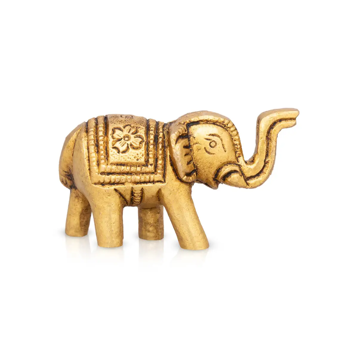 Elephant Statue - 2 x 3 Inches | Antique Brass Idol/ Elephant Figurine/ Elephant Idol for Home Decor