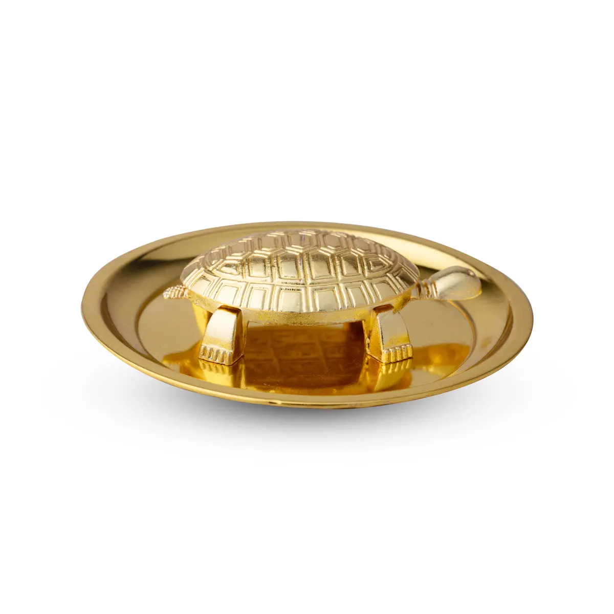 Plate with Tortoise - 0.75 x 3.5 Inches | Gold Polish Tray With Feng Shui Turtle for Good Luck/ 60 Gms Approx