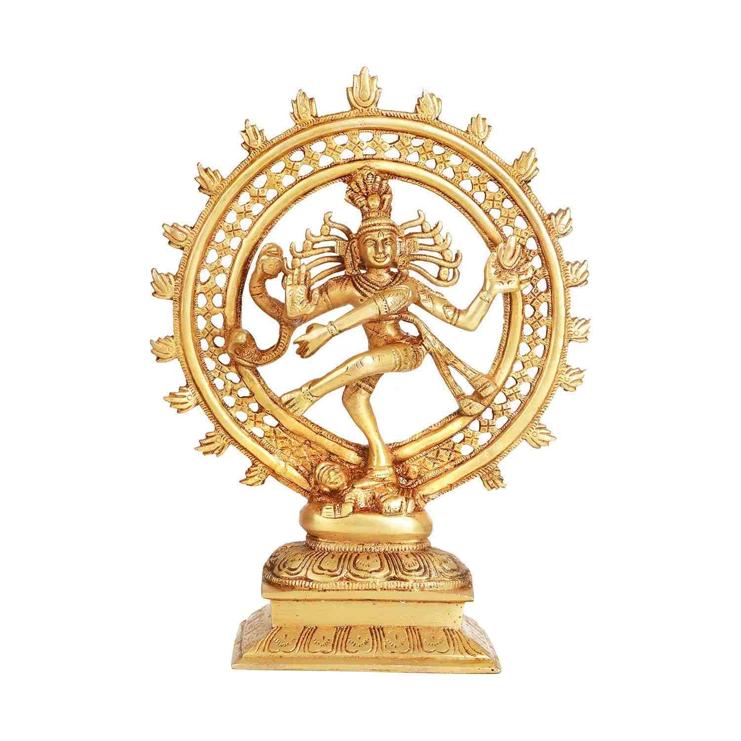 Natraj Double Frame - 11 Inches | Antique Brass Statue/ Nataraj Murti/ Natraja Statue for Pooja