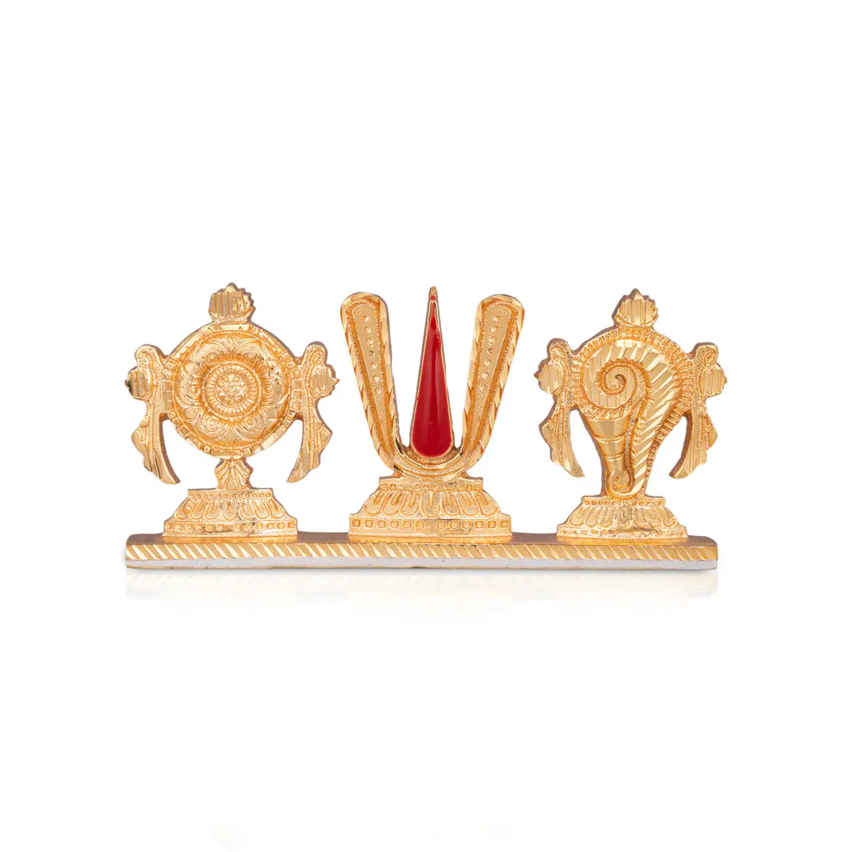 Shankh Chakra Tilak Stand - 2 x 4 Inches | Gold Polish Chakra Tilak Shankh for Pooja/ 100 Gms Approx