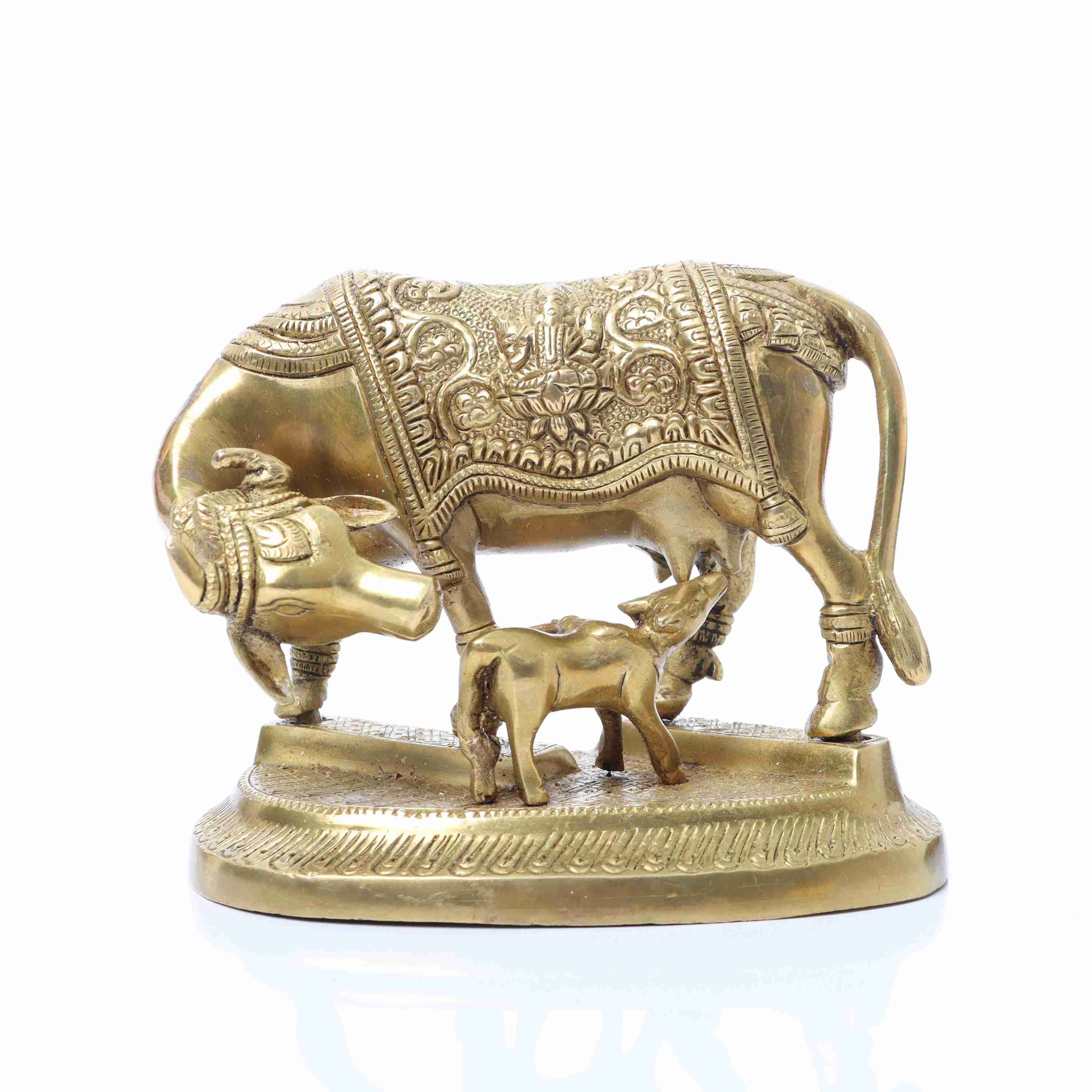 Brass Kamadhenu Statue - 4 Inches | Brass Idol/ Cow and Calf Idol/ Kamadhenu Idol for Pooja