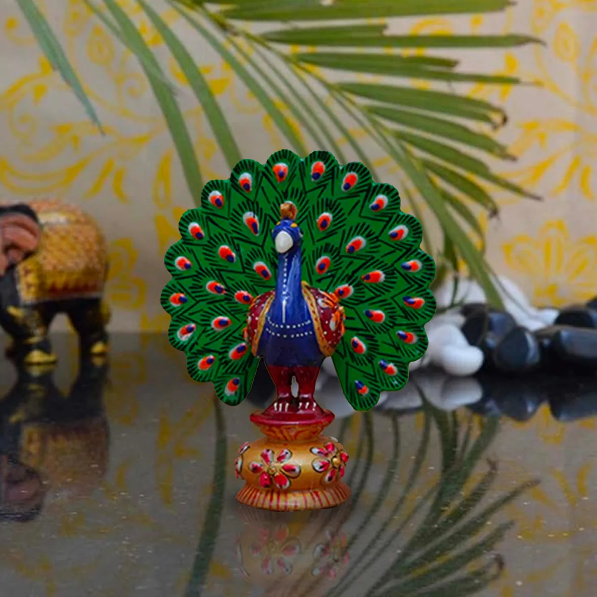 Peacock Statue - 5.5 Inches | Painted Peacock/ Wooden Peacock for Home Decor