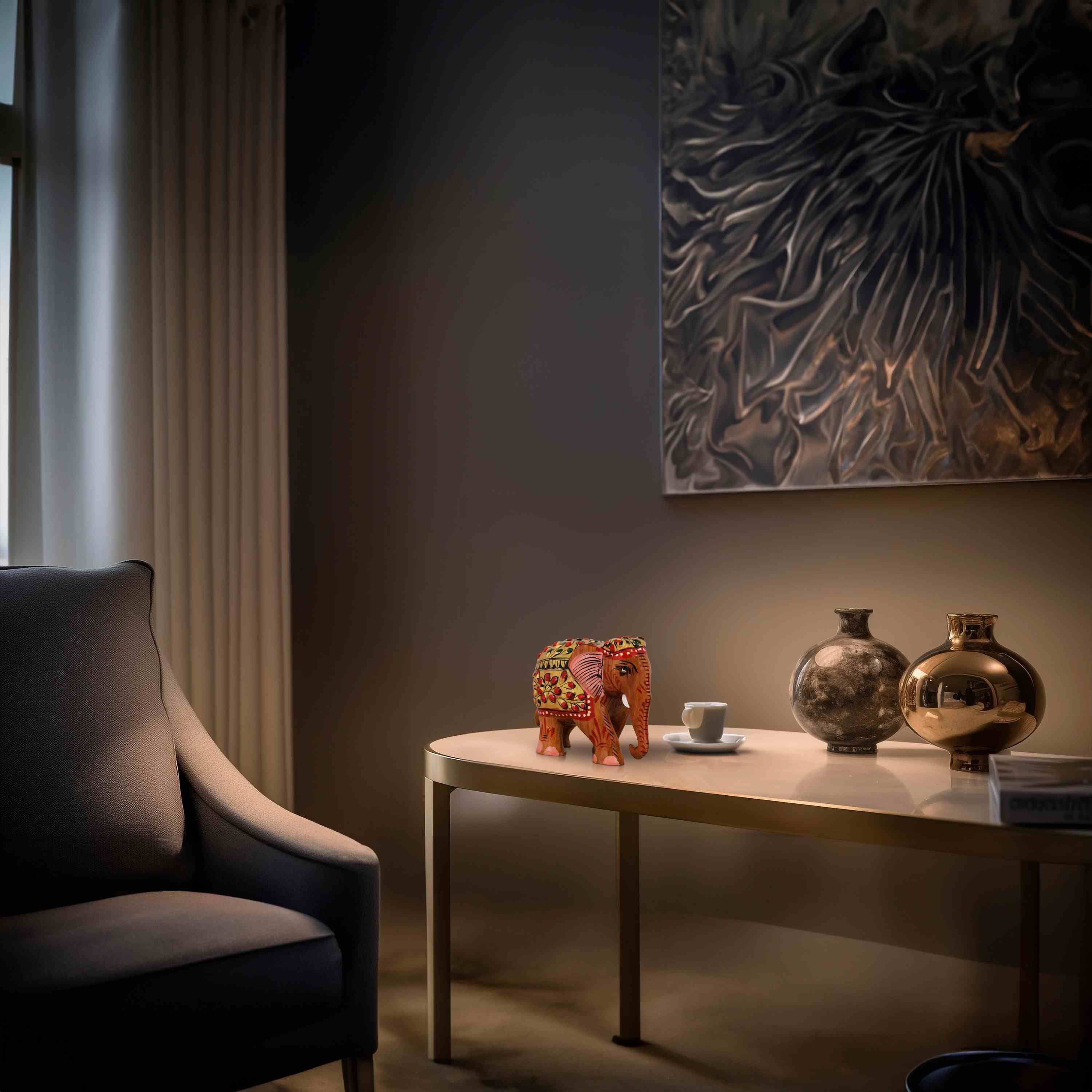Elephant Statue - 3 x 4 Inches | Wooden Elephant figurine/ Painted Elephant Idol for Home Decor