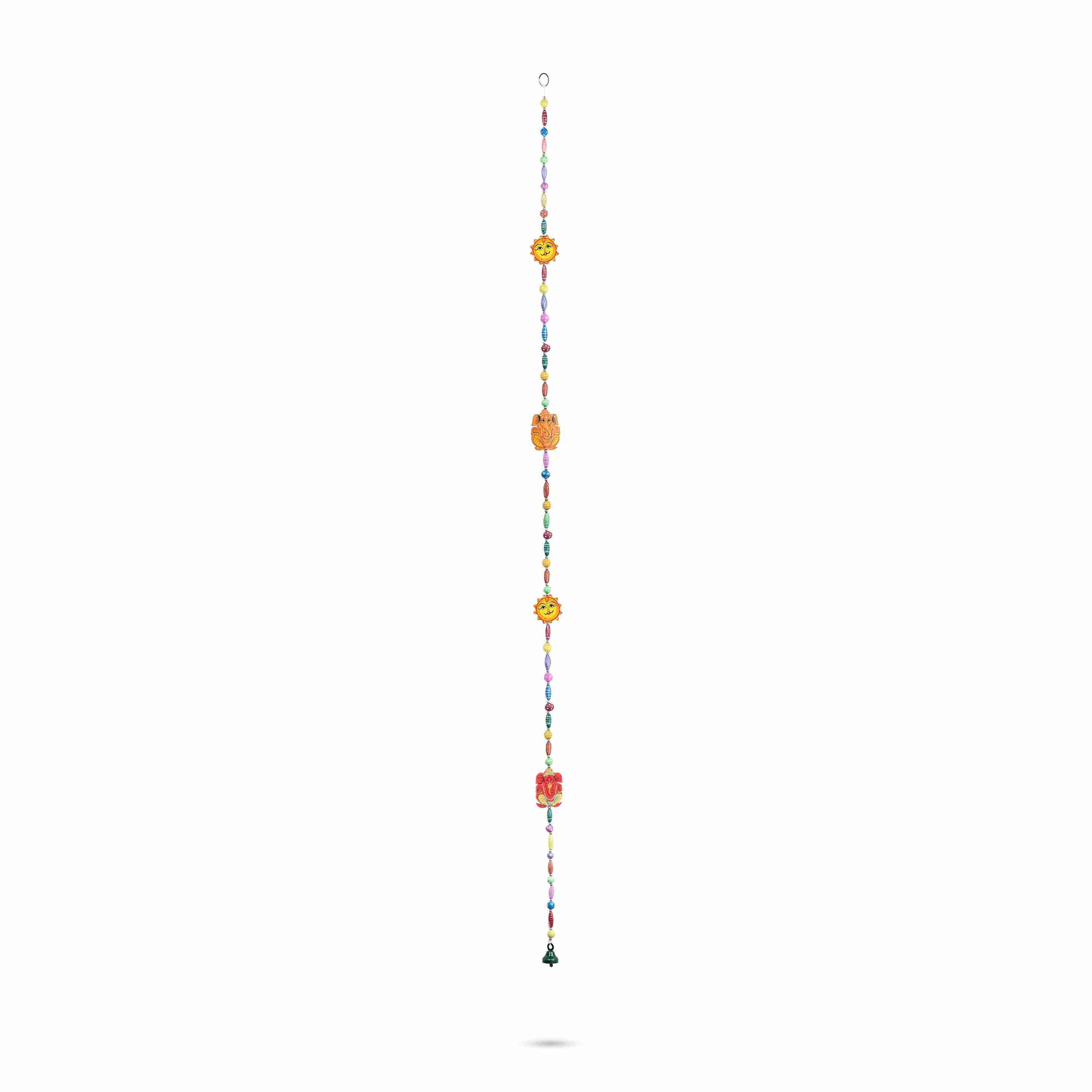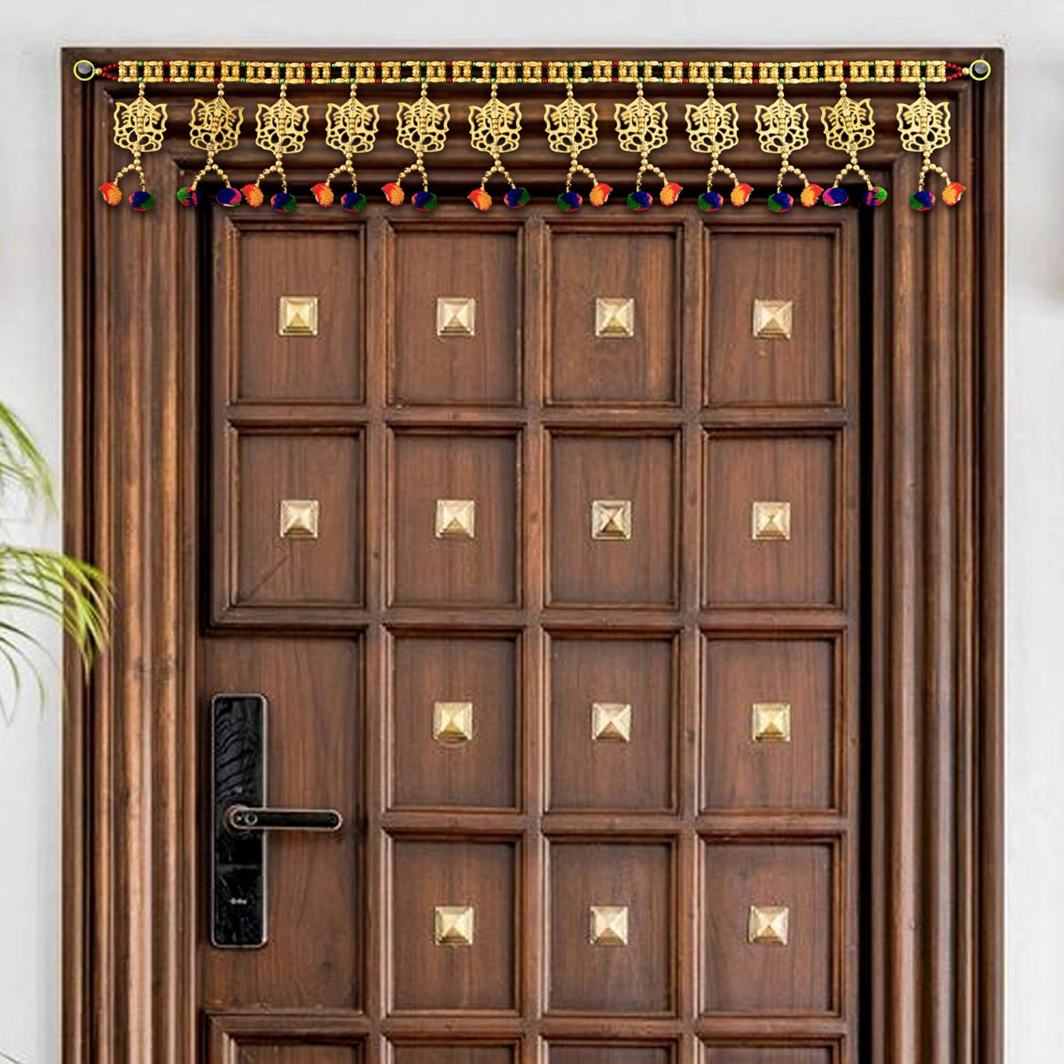 Gold Polish Toran - 43 Inches | Ganesh Leaf with Beads Design Bandanwar/ Aluminium Thoran for Door Decor