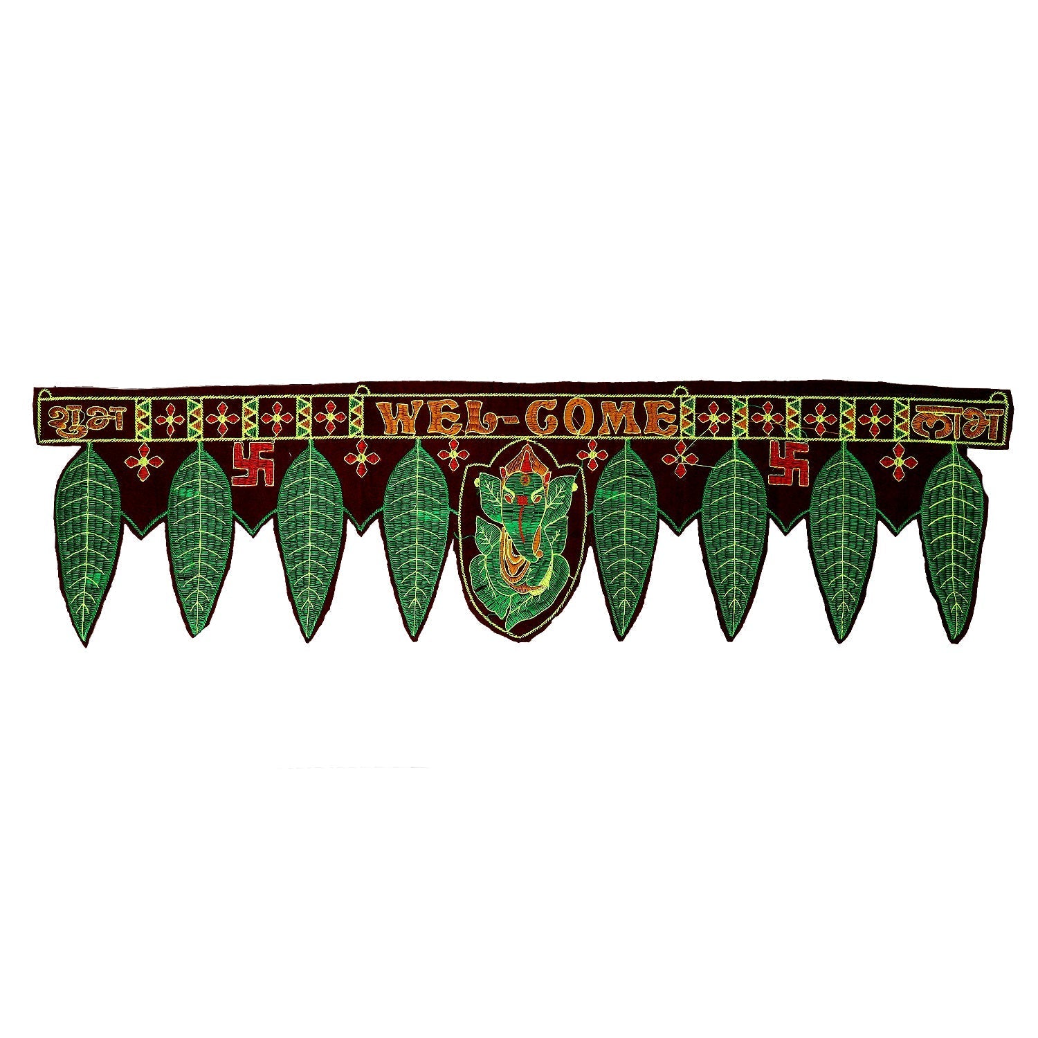 Bandanwar - 38 Inches | Leaf Design Toran/ Velvet Thoranam for Door Decor