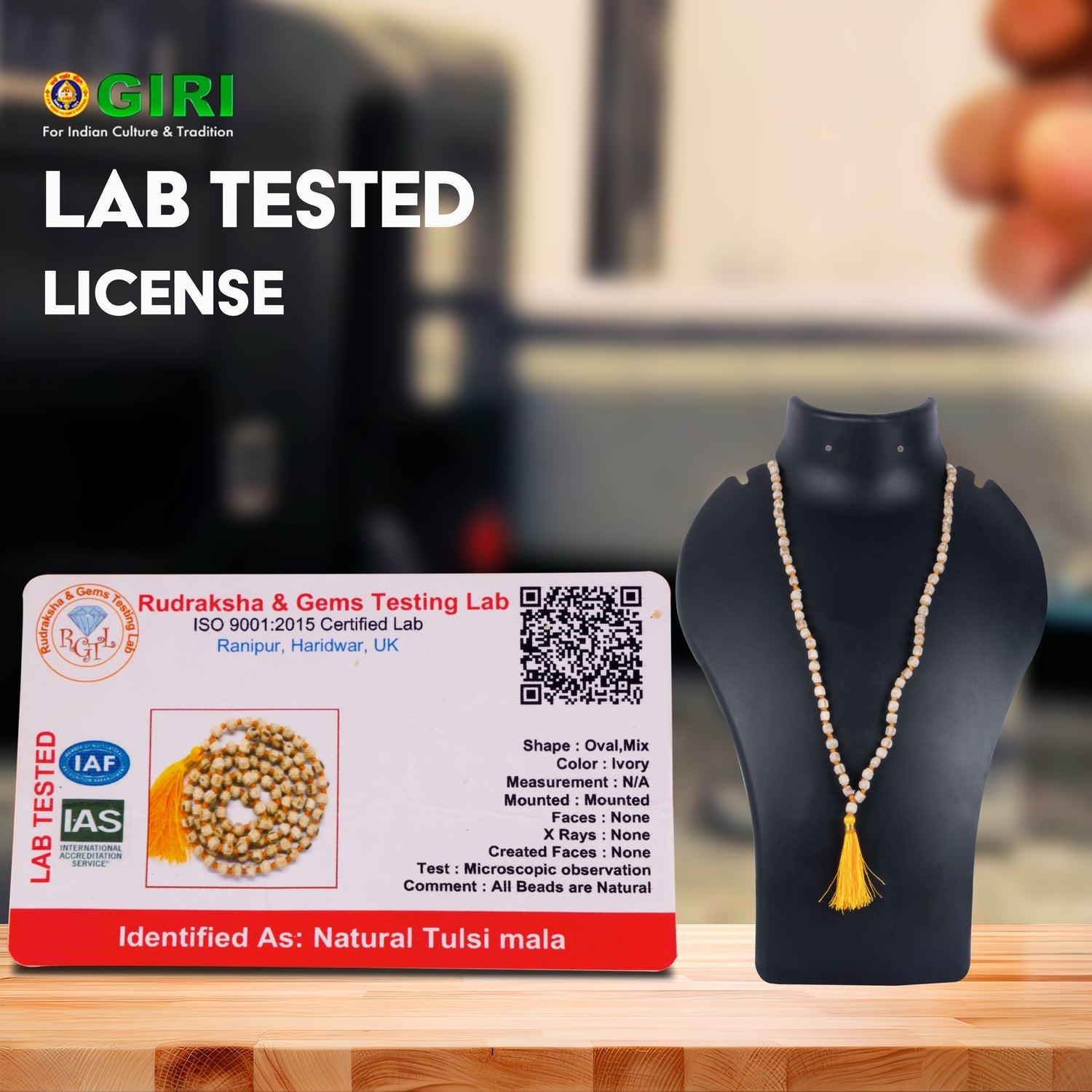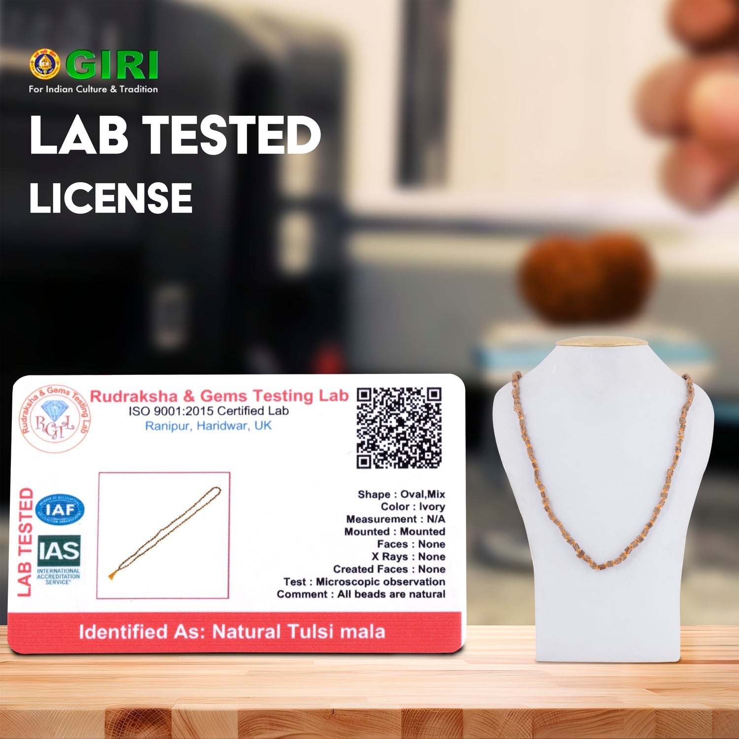 Tulasi Mala - 14 Inches | Kanthi Mala/ Tulsi Mala for Men & Women