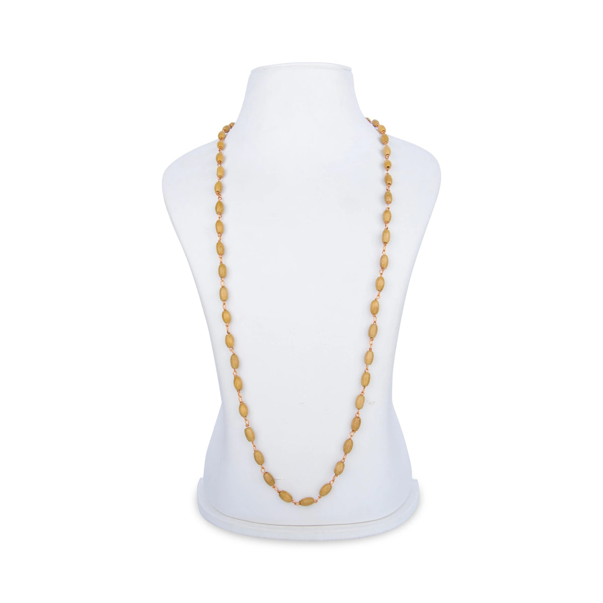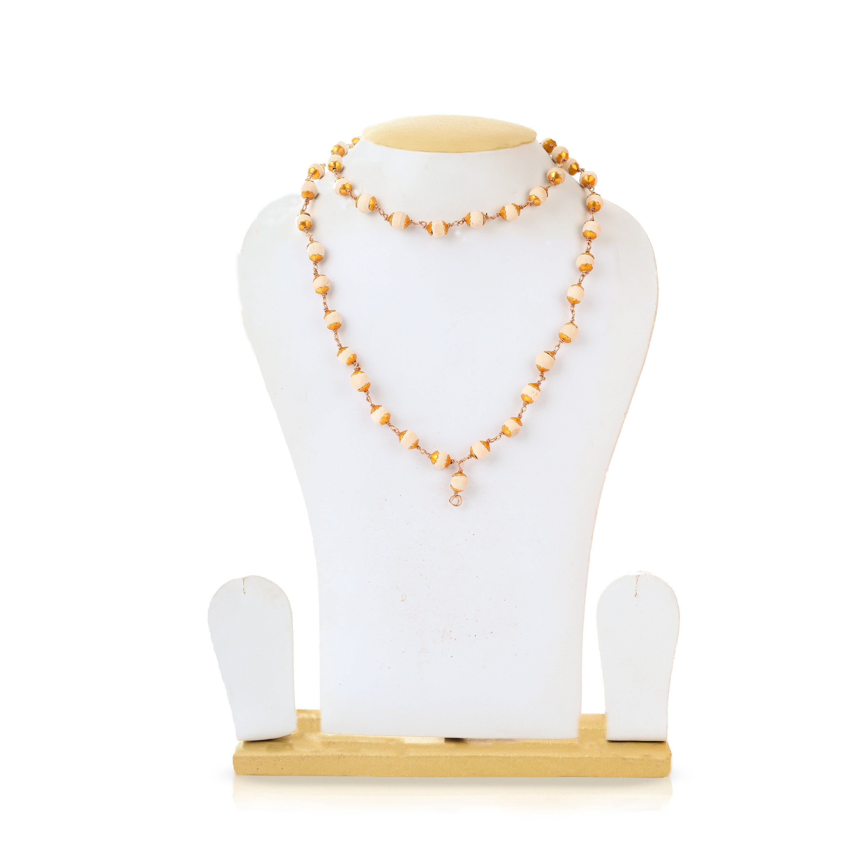 Tulasi Mala With Gold Polish Cup - 16.5 Inches | 8 mm/ 54 Beads Tulsi Kanthi Mala/ White Thulasi Malai for Men
