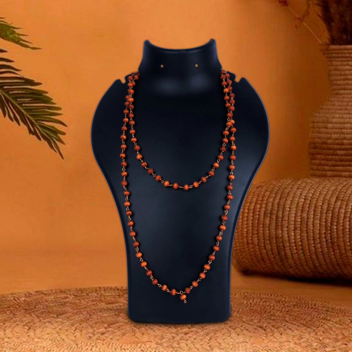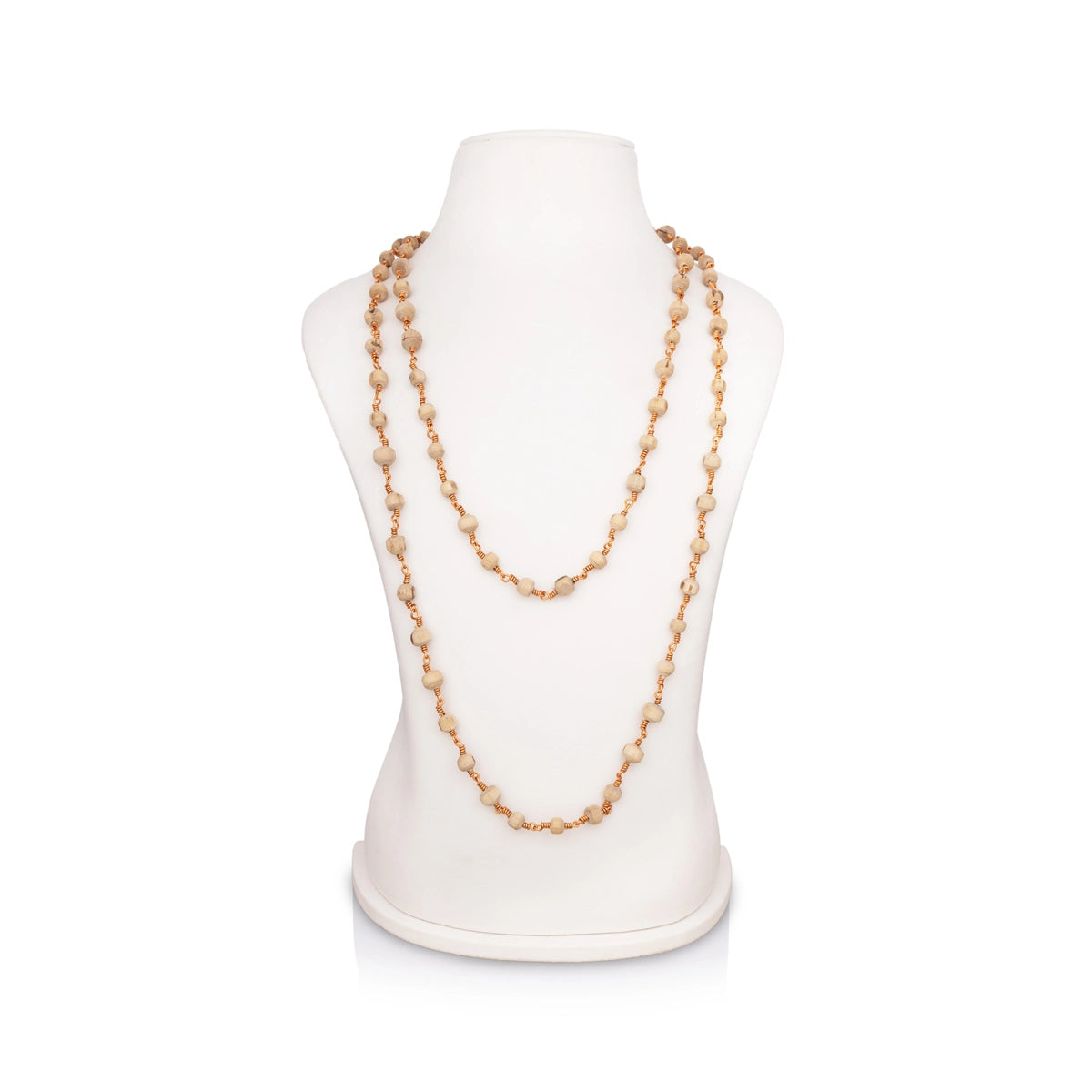 Tulasi Mala - 25 Inches | 8 mm/108 Beads Tulsi Mala/ Copper Knot Kantha Mala for Meditation