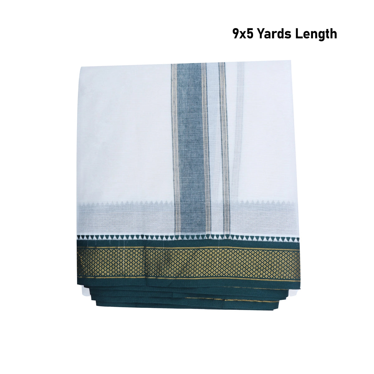 Veshti - 9 x 5 Yards | 16 Kan MayilKan Jari Border Dhoti/ Half White Vesti for Men