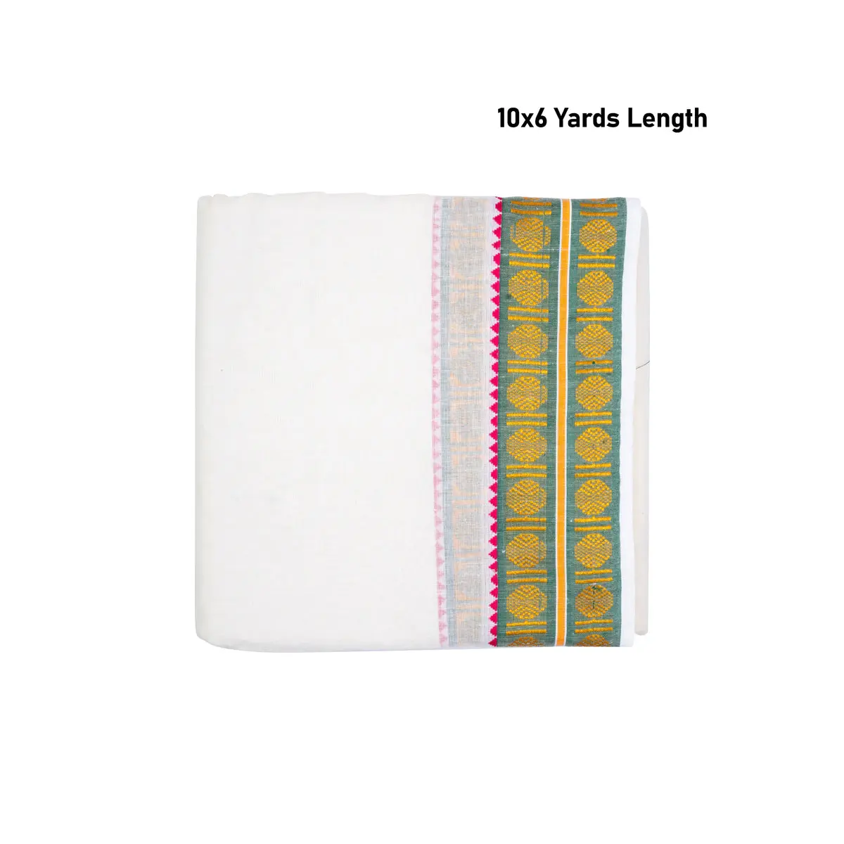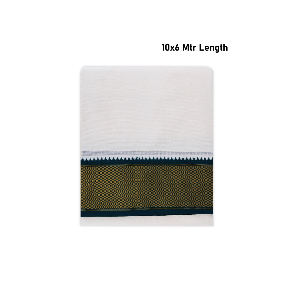 Veshti - 10 x 6 Yards | 10 Kan MayilKan Border Dhoti/ White Vesti for Men