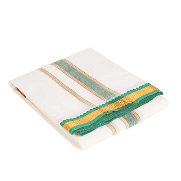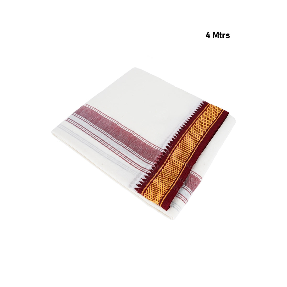 Veshti - 10 x 6 Yards | 7 Kan MayilKan Jari Border Dhoti/ Half White Vesti for Men