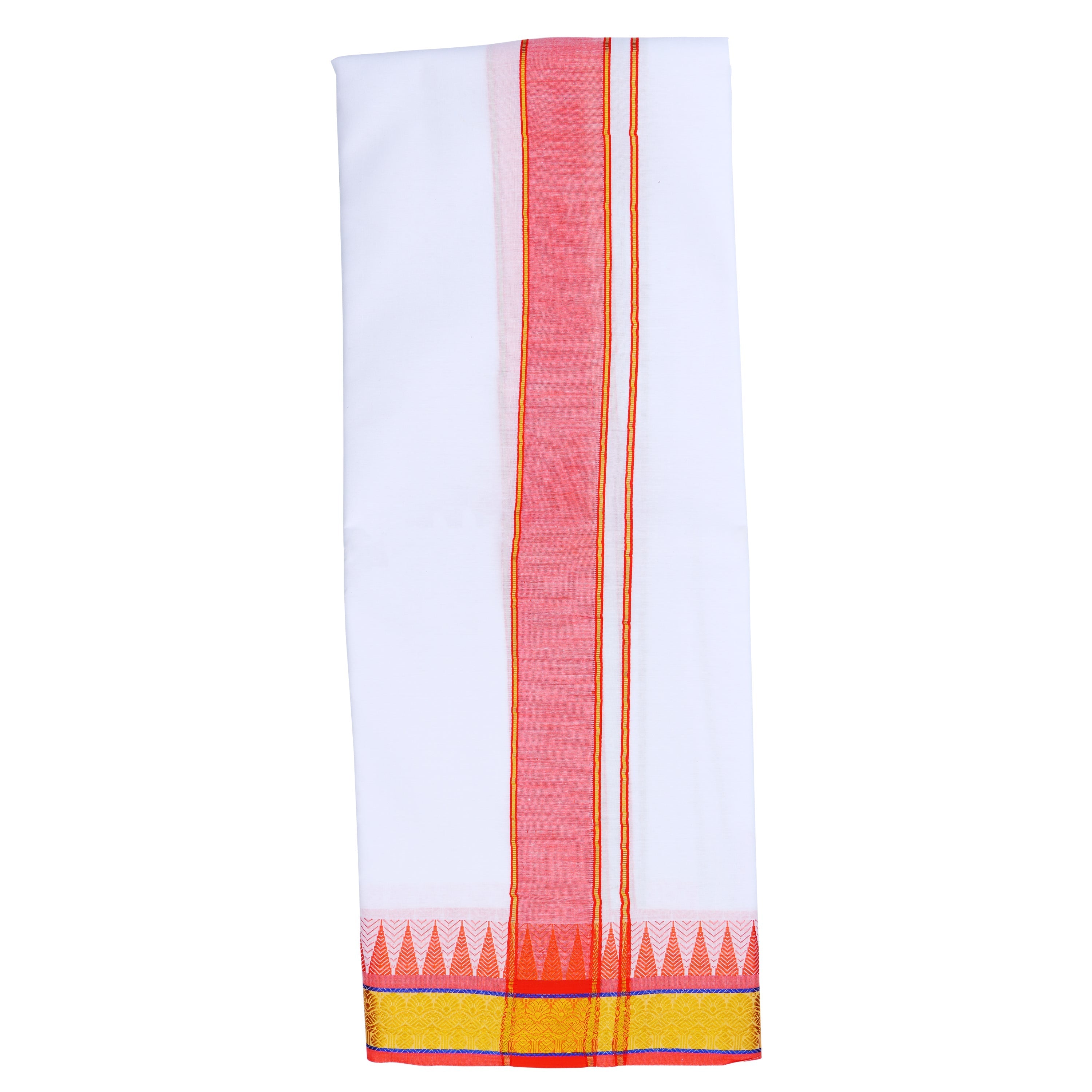 Veshti - 9 x 5 Yards - Red | Cotton Material/ Jacquard Design Dhoti for Men/ Assorted Colour