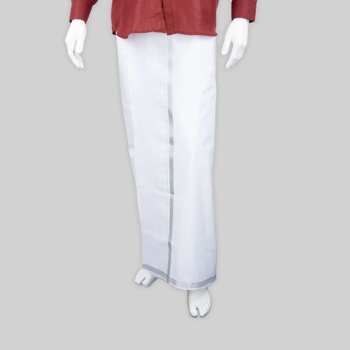 Veshti - 2 Mtrs | White Colour Vesti/ Silver & Gold Jari Border Dhoti for Men