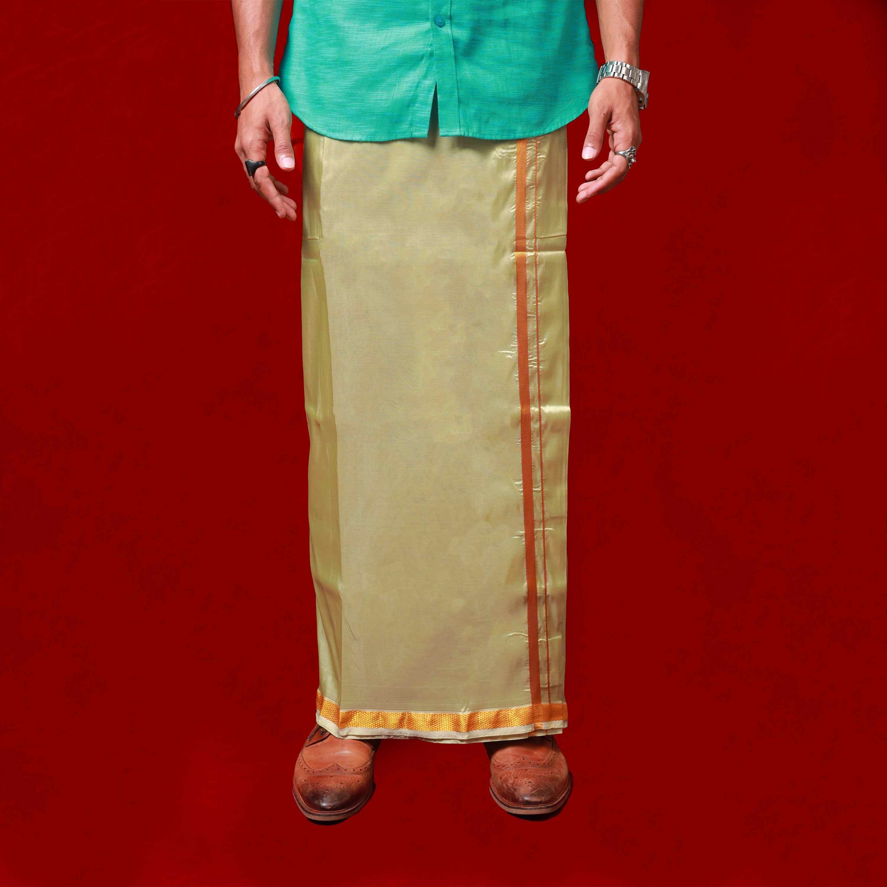 Veshti - 2 Mtrs - Orange | Gundanchi Border Dhoti/ Vesti for Men/ Assorted Colour