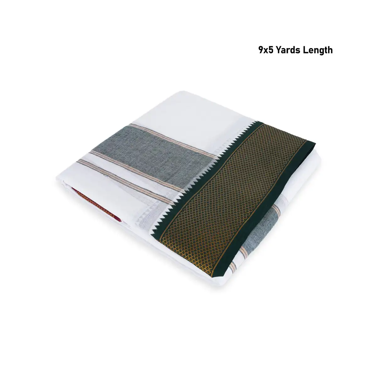 Veshti - 9 x 5 Mtrs | Half White Vesti/ 5 Kan Mayilkan Border Dhoti for Men