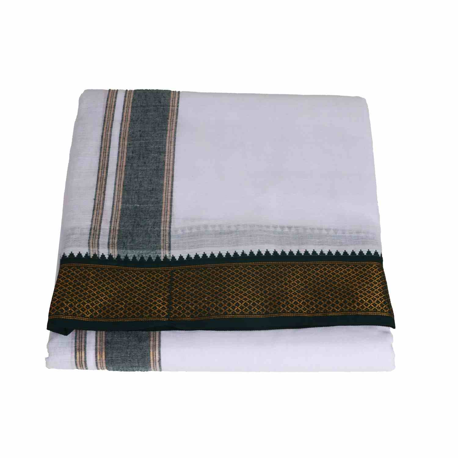 Veshti - 10 x 6 Yards | 7 Kan MayilKan Border Dhoti/ White Vesti for Men