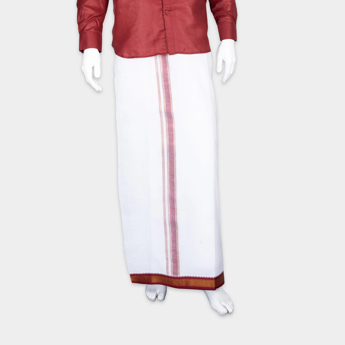 White Veshti - 9 x 5 Yards | Jari Border Dhoti/ Vesti for Men