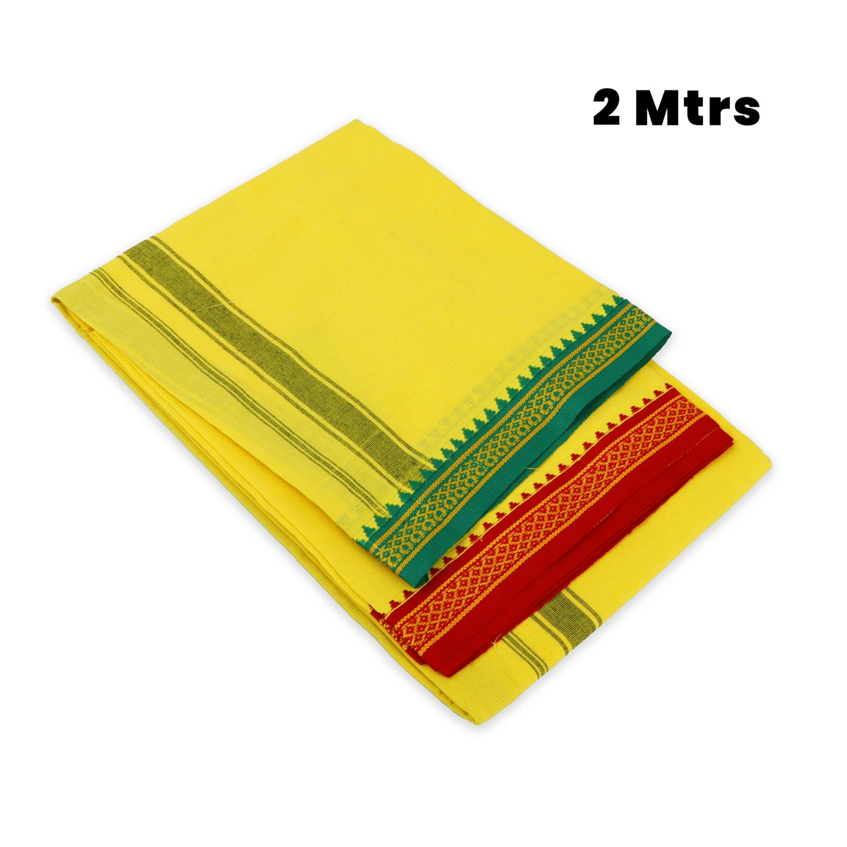 Veshti - 2 Mtrs - Yellow | Thalapathi Border Design Vesti/ Dhoti for Men/ Assorted Colour