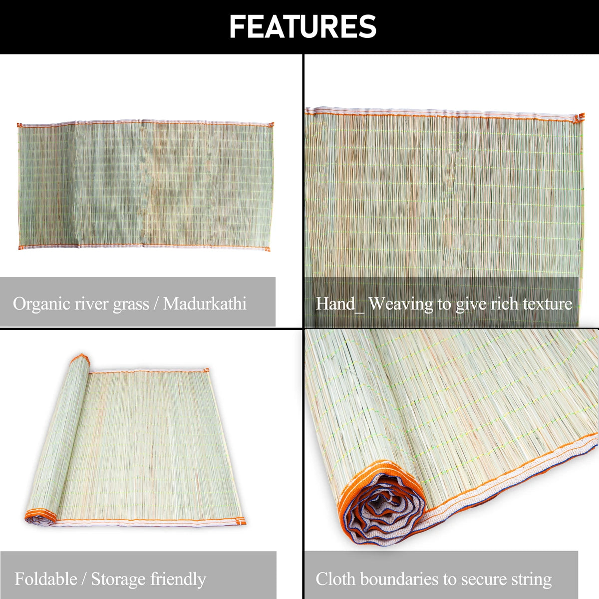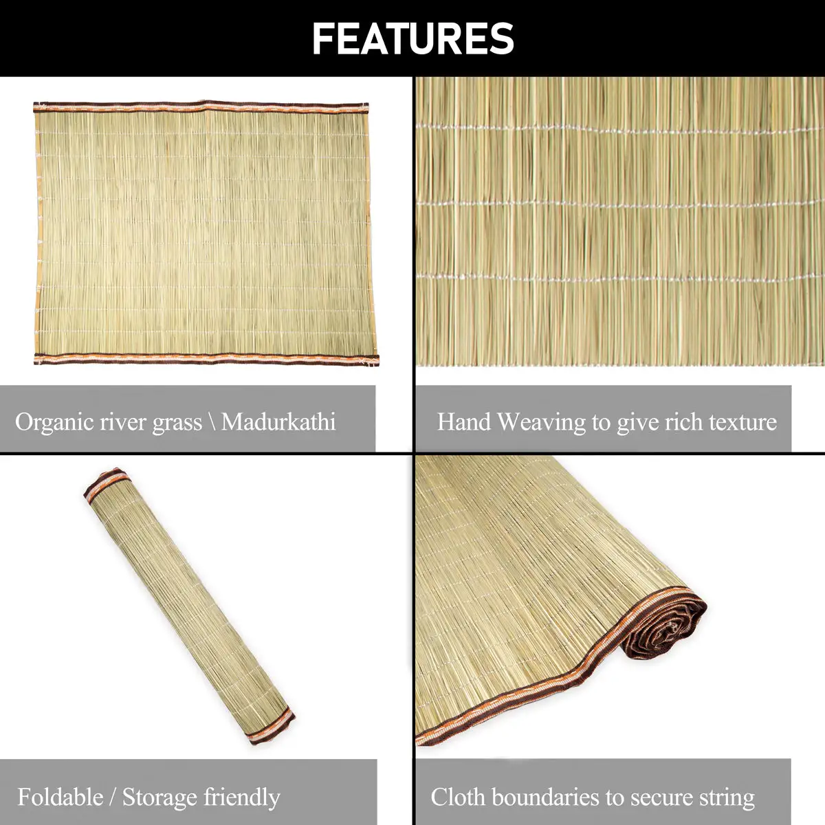 Yoga Mat - 6 x 6.25 Feet | Handmade Mat/ Korai Pai/ Sitting Mat for Pooja/ 1.780 Kgs