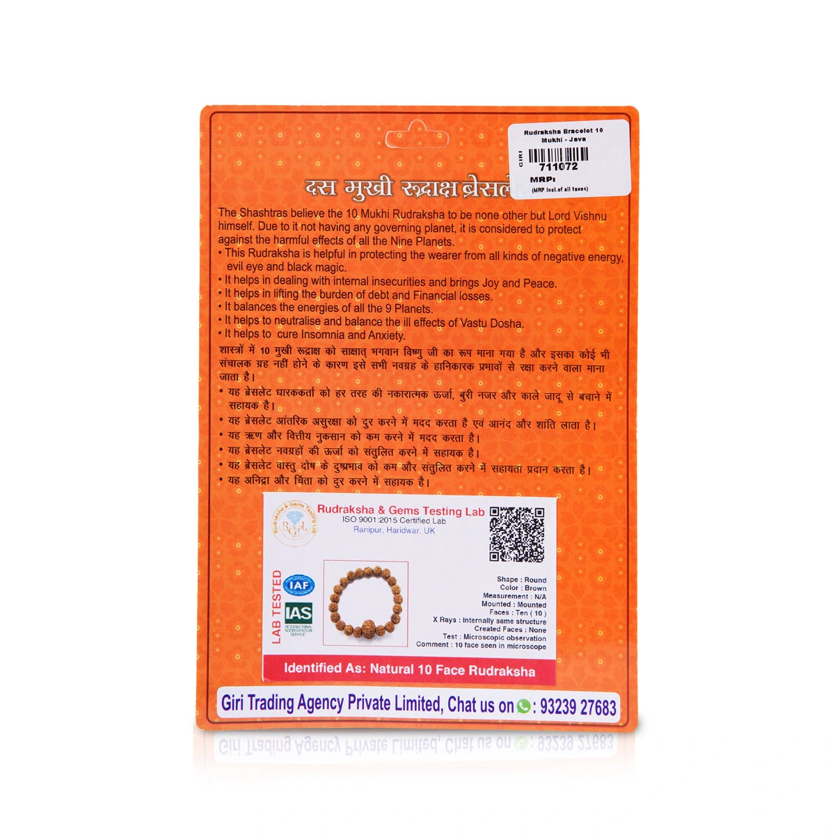 10 Mukhi Rudraksha Bracelet - Java | Ten Face Rudraksh Hand Band for Men and Women