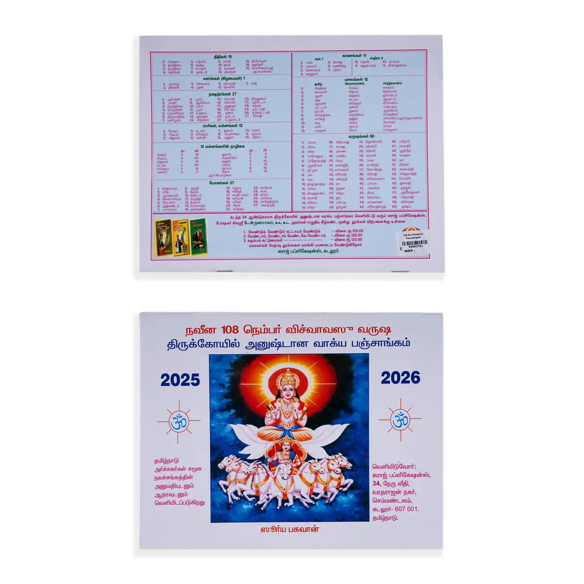 108 - Thirukovil Panchangam 2025 - 2026 - Tamil | Visuvavasu Varuda Panchangam Book/ Astrology Book