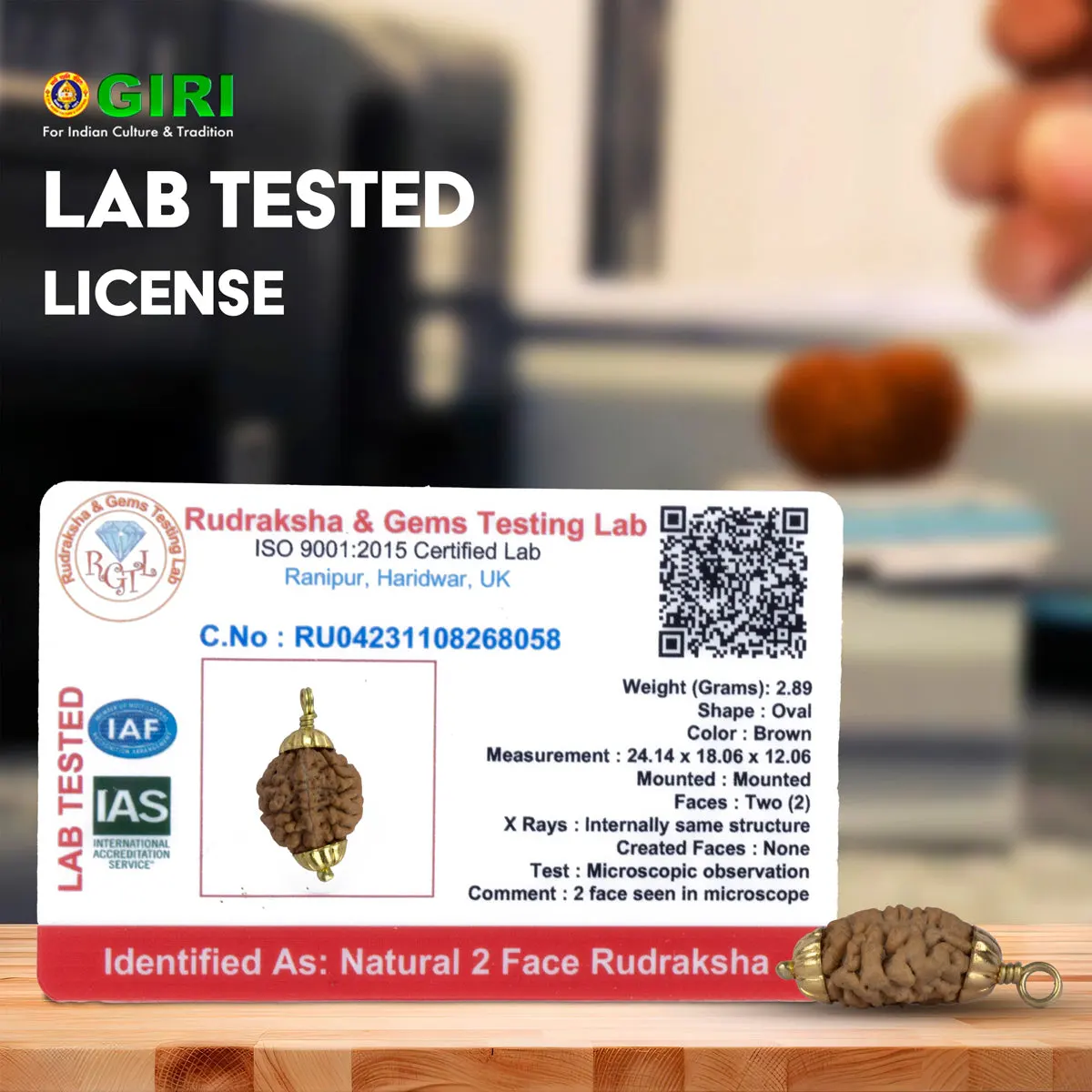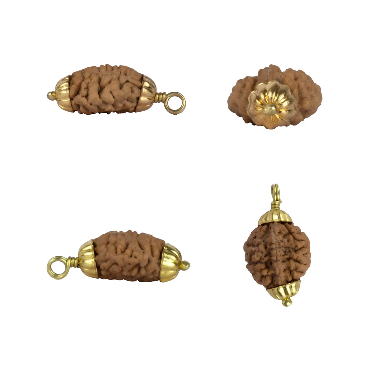2 Face Rudraksha Bead Pendant | South Rudraksha Bead/ Golden Cup Rudraksha Locket for Men & Women