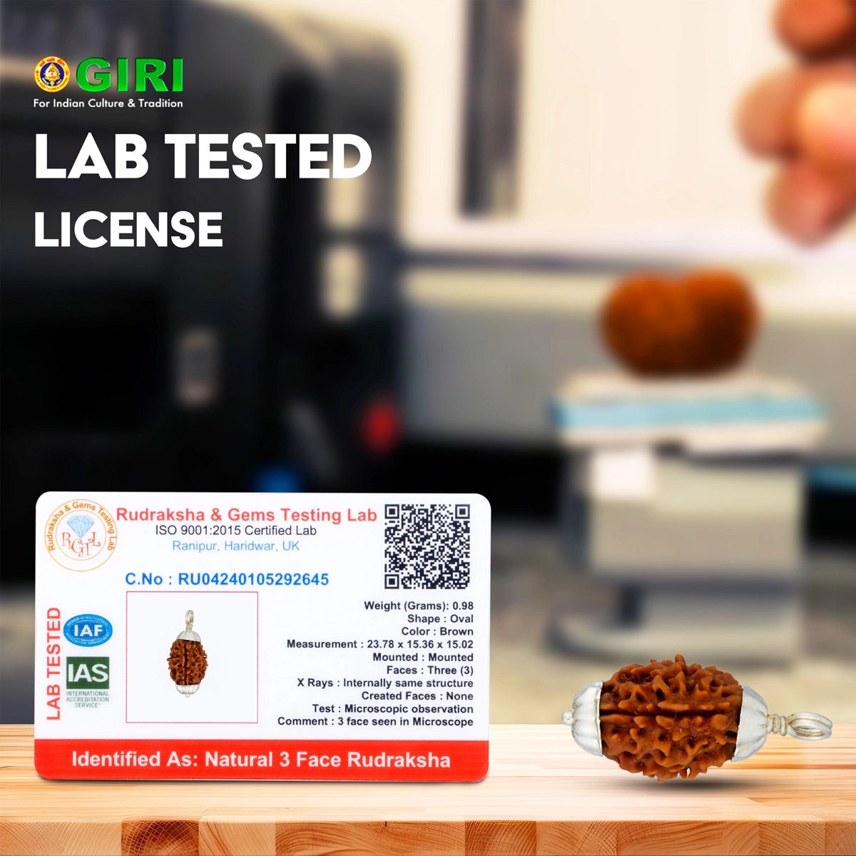 3 Face Rudraksha Beads Pendant | Himalayan Rudraksha Beads/ White Cup Rudraksha Locket for Men & Women