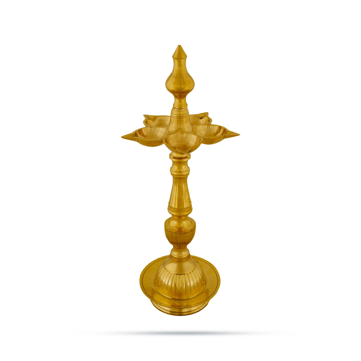 5 Face Kerala Kuthu Vilakku - 14.5 X 5.23 Inches | Brass Lamp/ Brass Deepam/ Kalash Diya For Festival Lighting