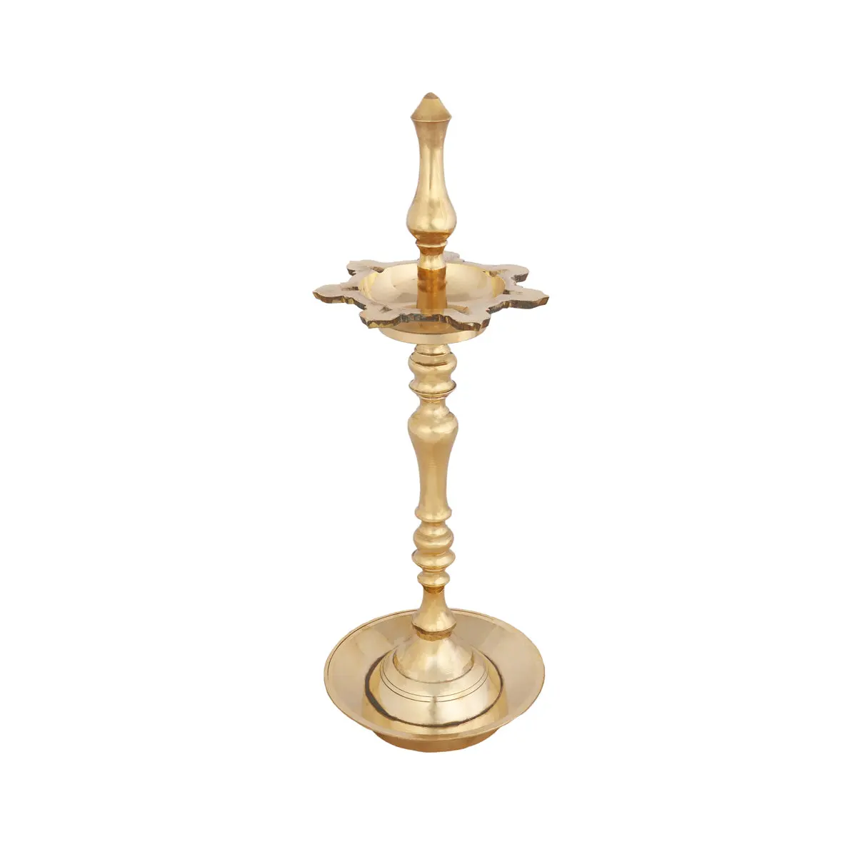 Home / Products / Kuthuvilakku / 7 Face Lamp - 14 x 7 Inches | Brass Vilakku/ Karaikudi Seven Face Kuthu Vilakku for Pooja/ 980 Gms Approx