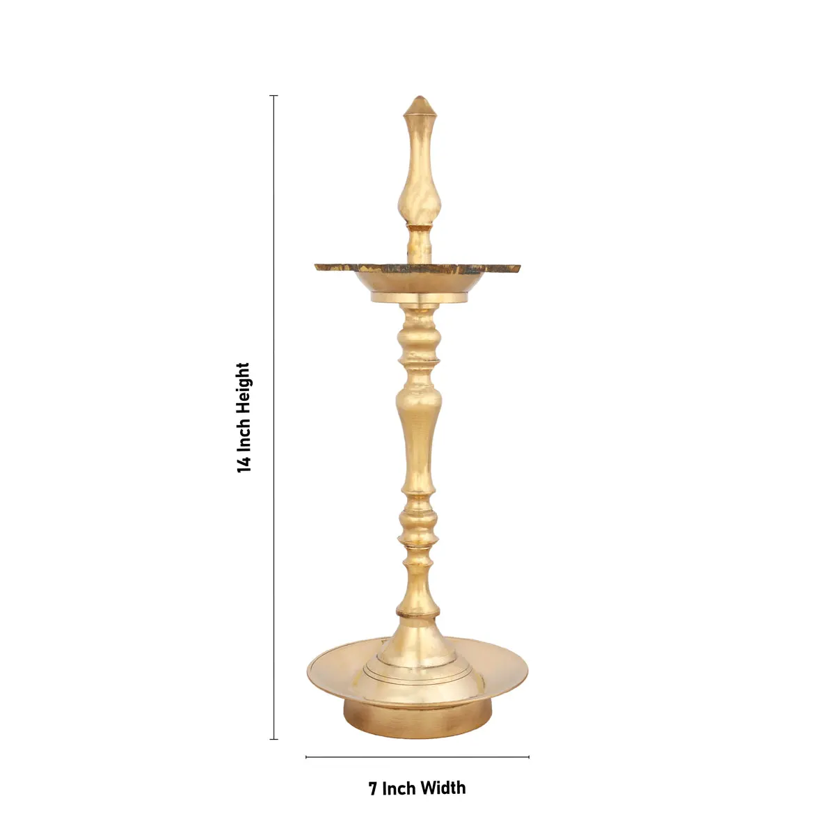 7 Face Lamp - 14 x 7 Inches | Brass Vilakku/ Karaikudi Seven Face Kuthu Vilakku for Pooja/ 980 Gms Approx