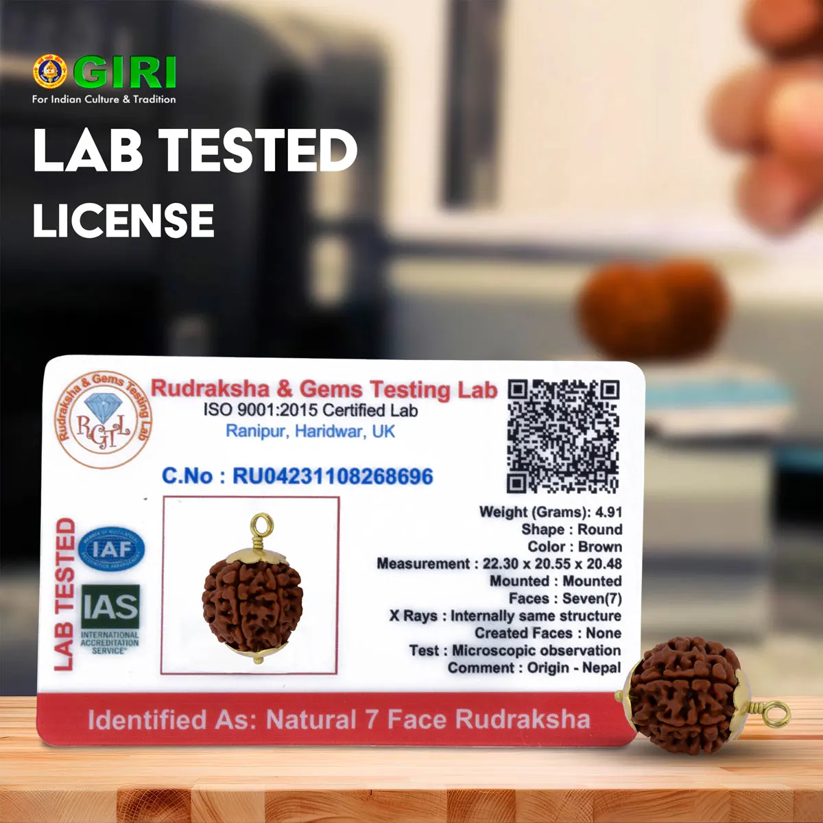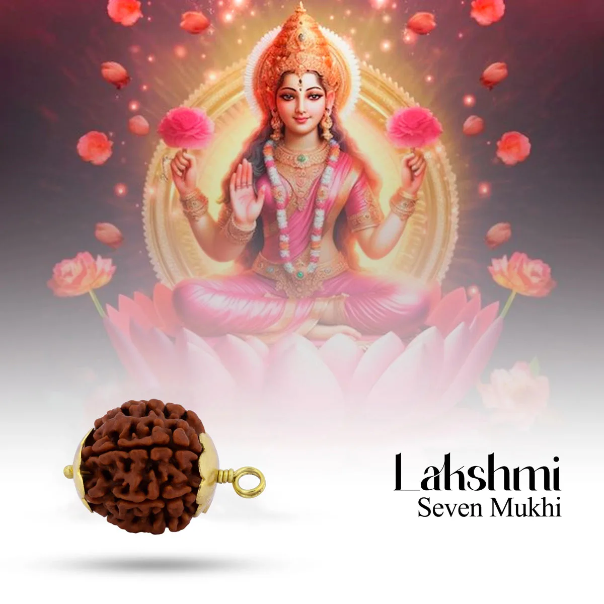 7 Face Rudraksha Bead Pendant | Nepali Rudraksha Bead/ Golden Cup Rudraksha Locket for Men & Women