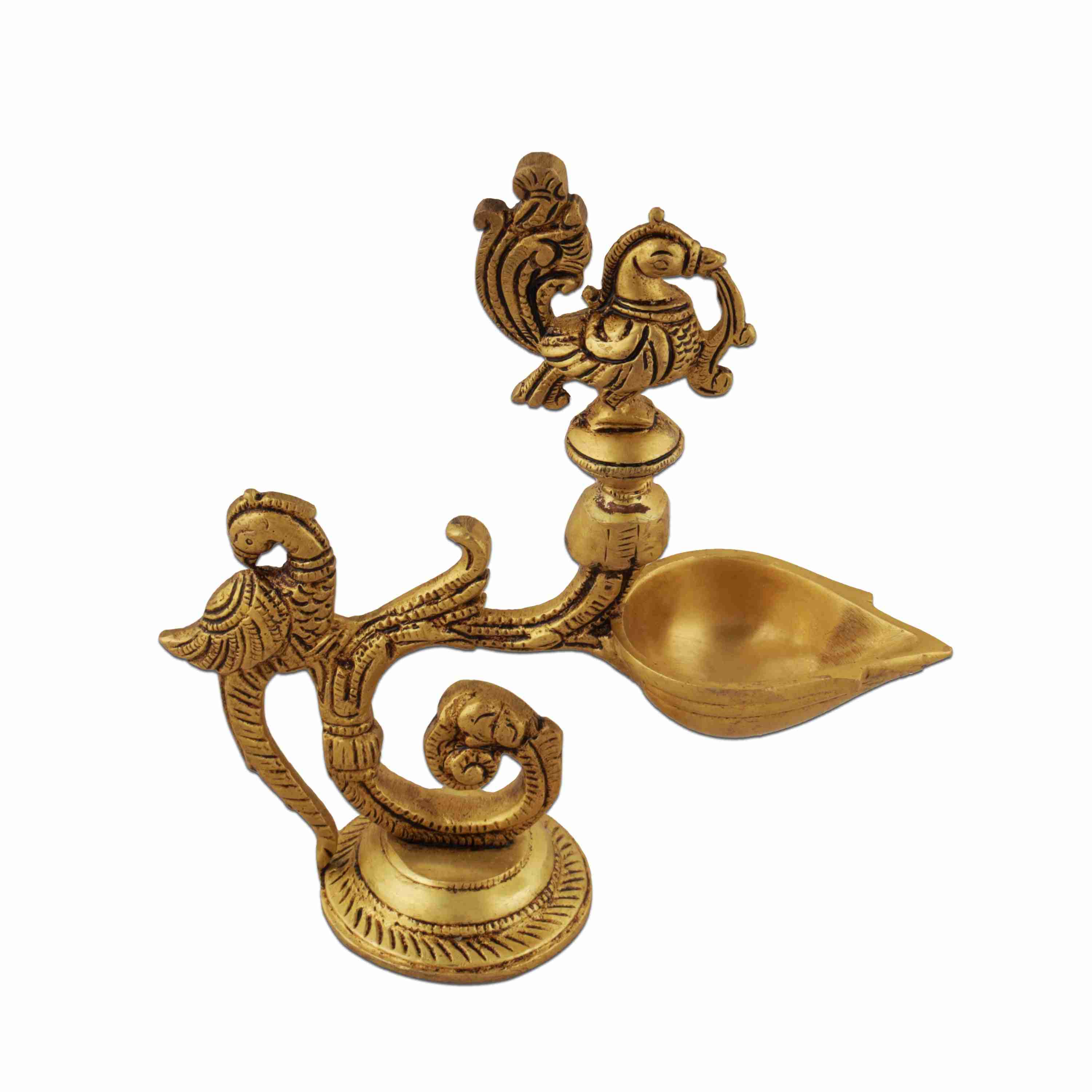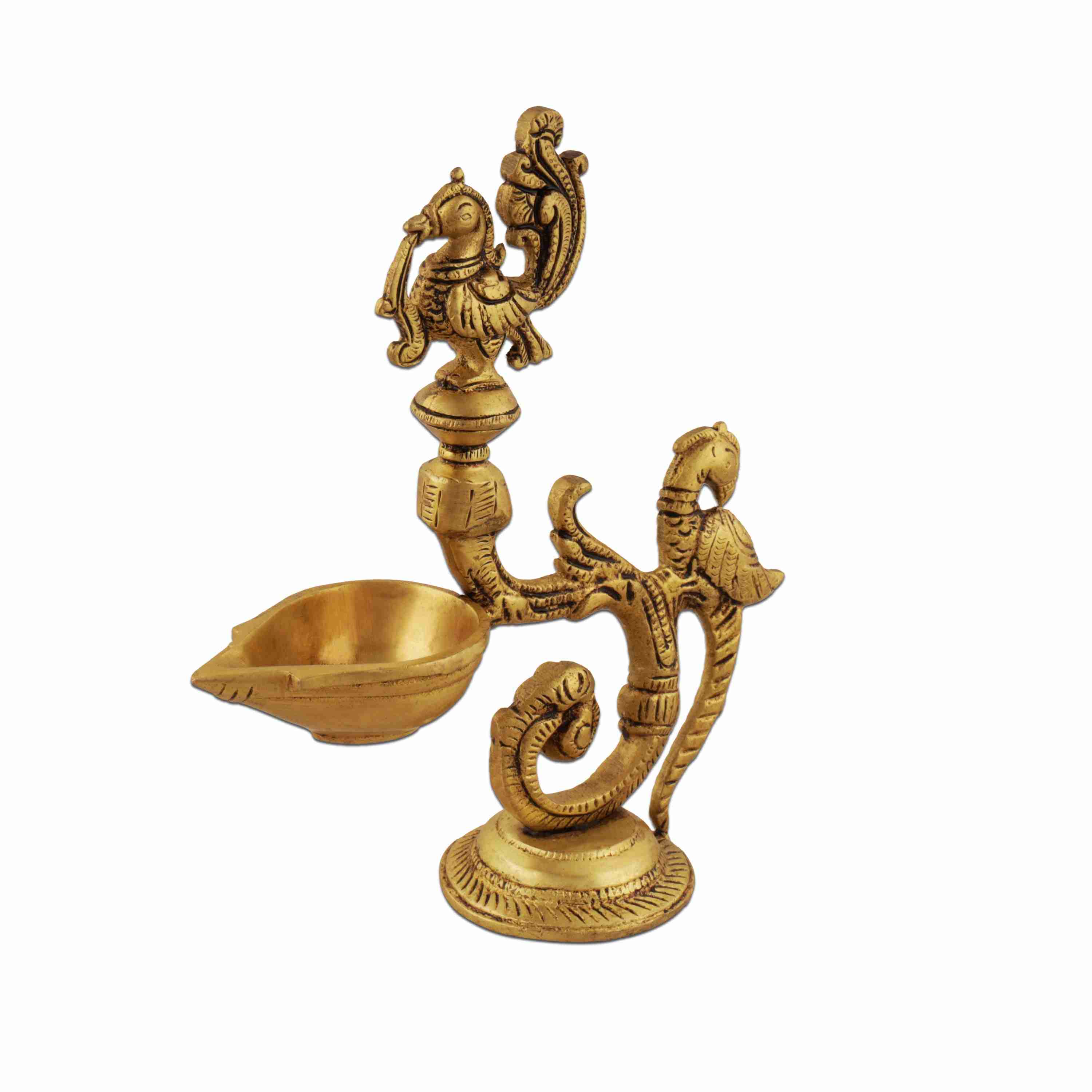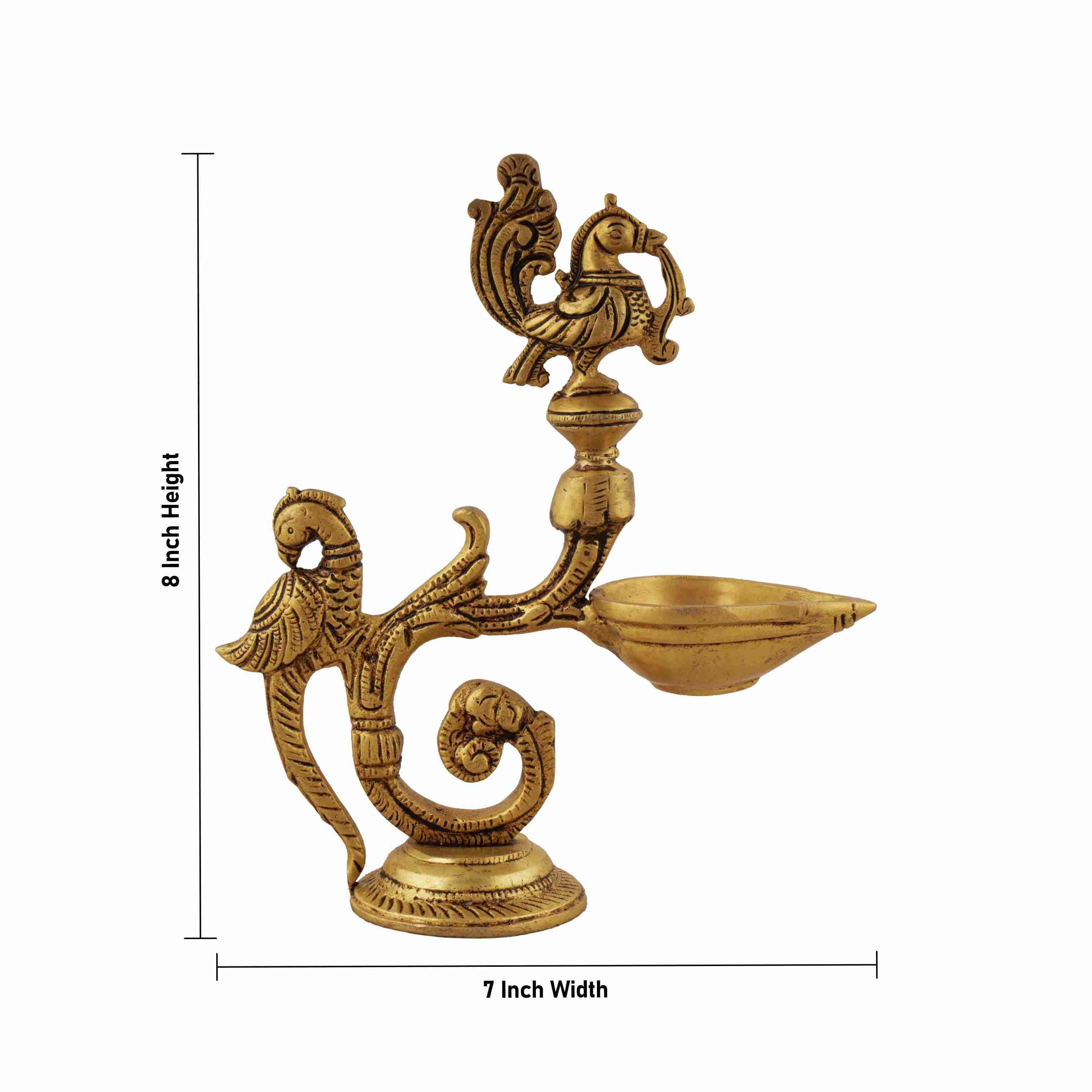 Agal Deepam with Parrot Handle - 8 x 7 Inches | Agal Vilakku/ Brass Lamp for Pooja/ 720 Gms Approx