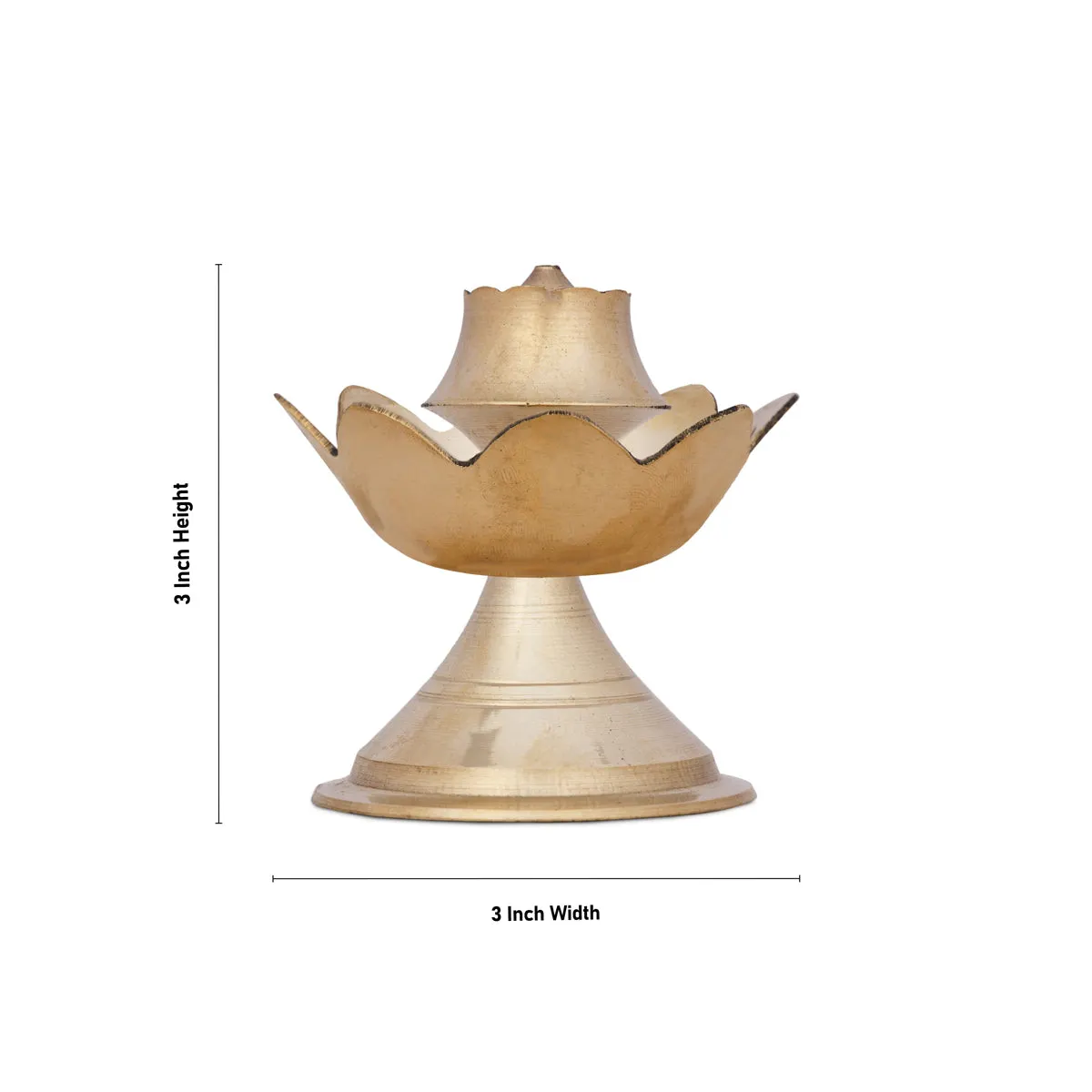 Agarbathi Stand - 3 x 3 Inches | Lotus Design Brass Incense Holder for Pooja/ 100 Gms Approx