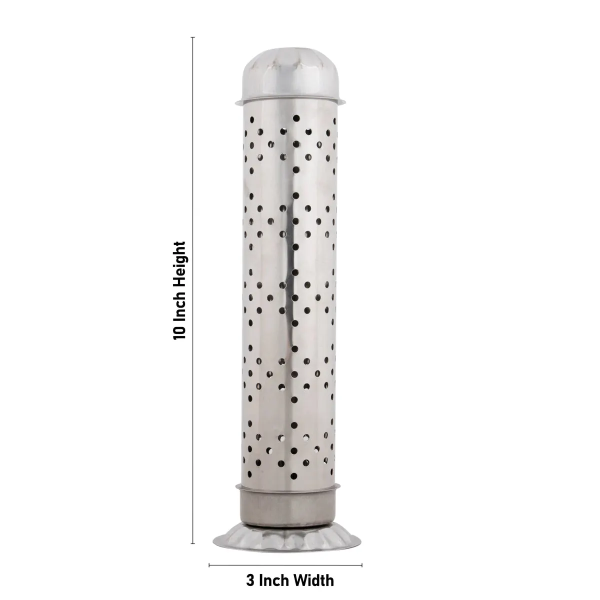 Agarbathi Stand With Base - 10 x 3 Inches | Pipe Shape Steel Incense Stick Holder With Lid for Pooja