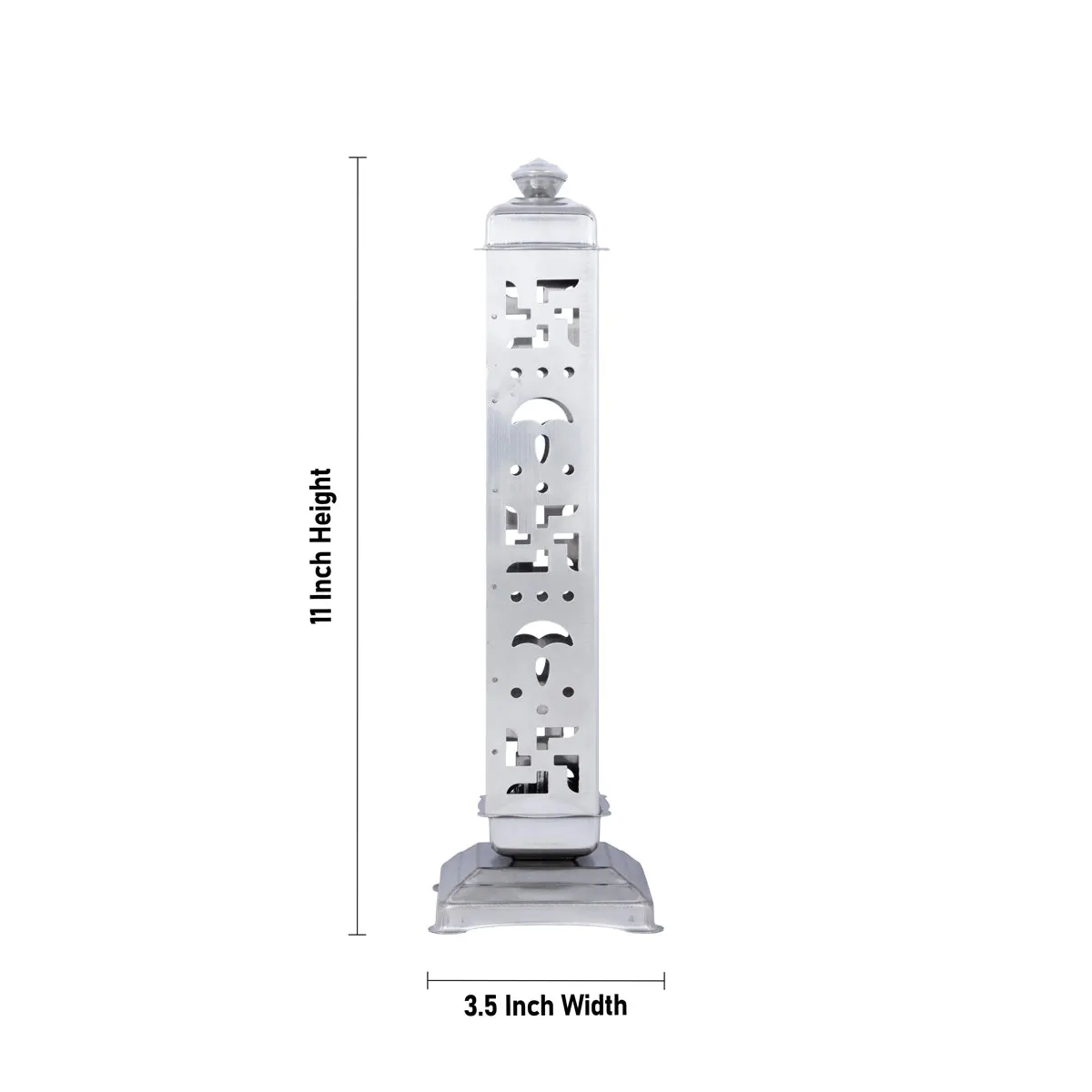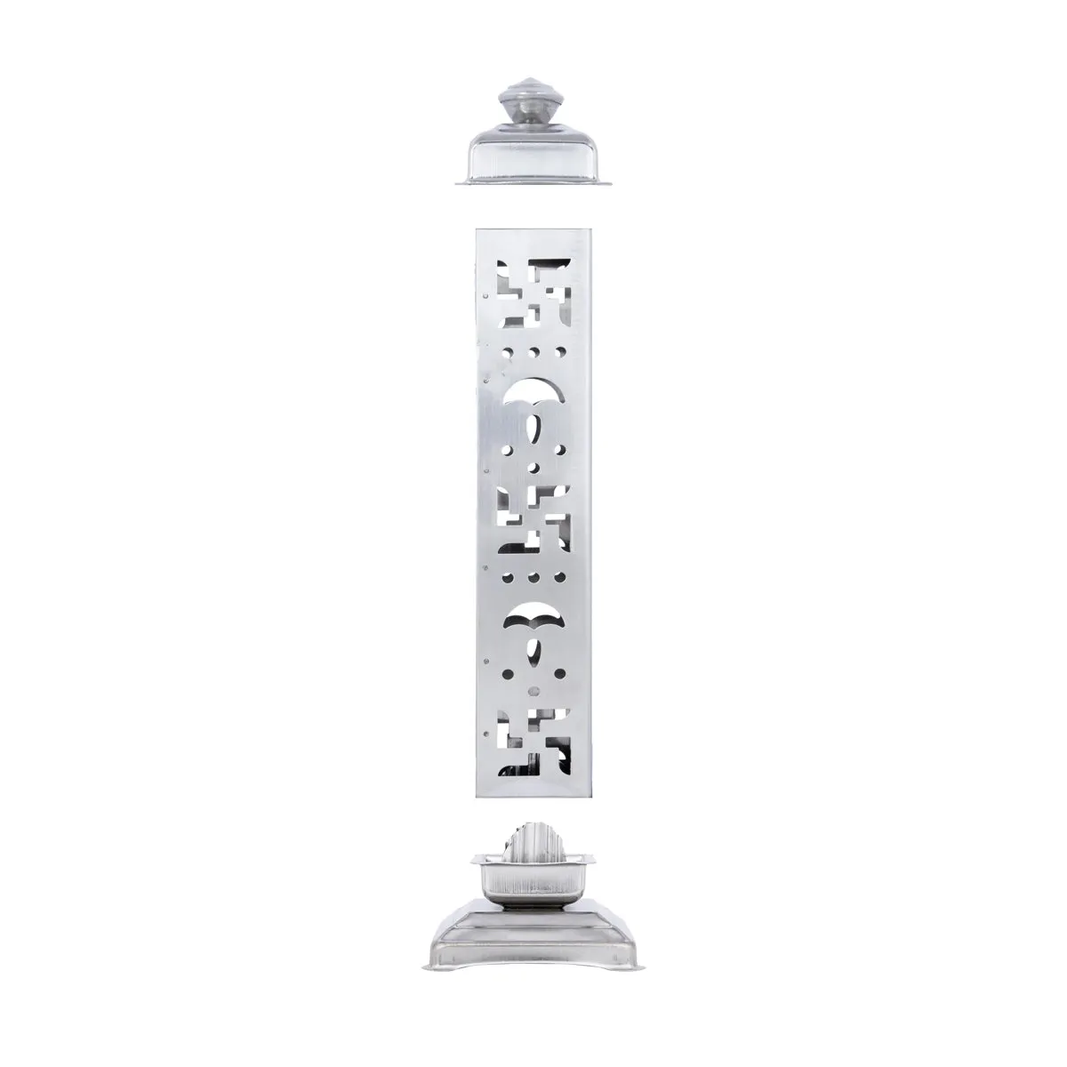 Agarbathi Stand With Base - 11 x 3.5 Inches | Swastic Pipe Design Steel Incense Stick Holder With Lid for Pooja