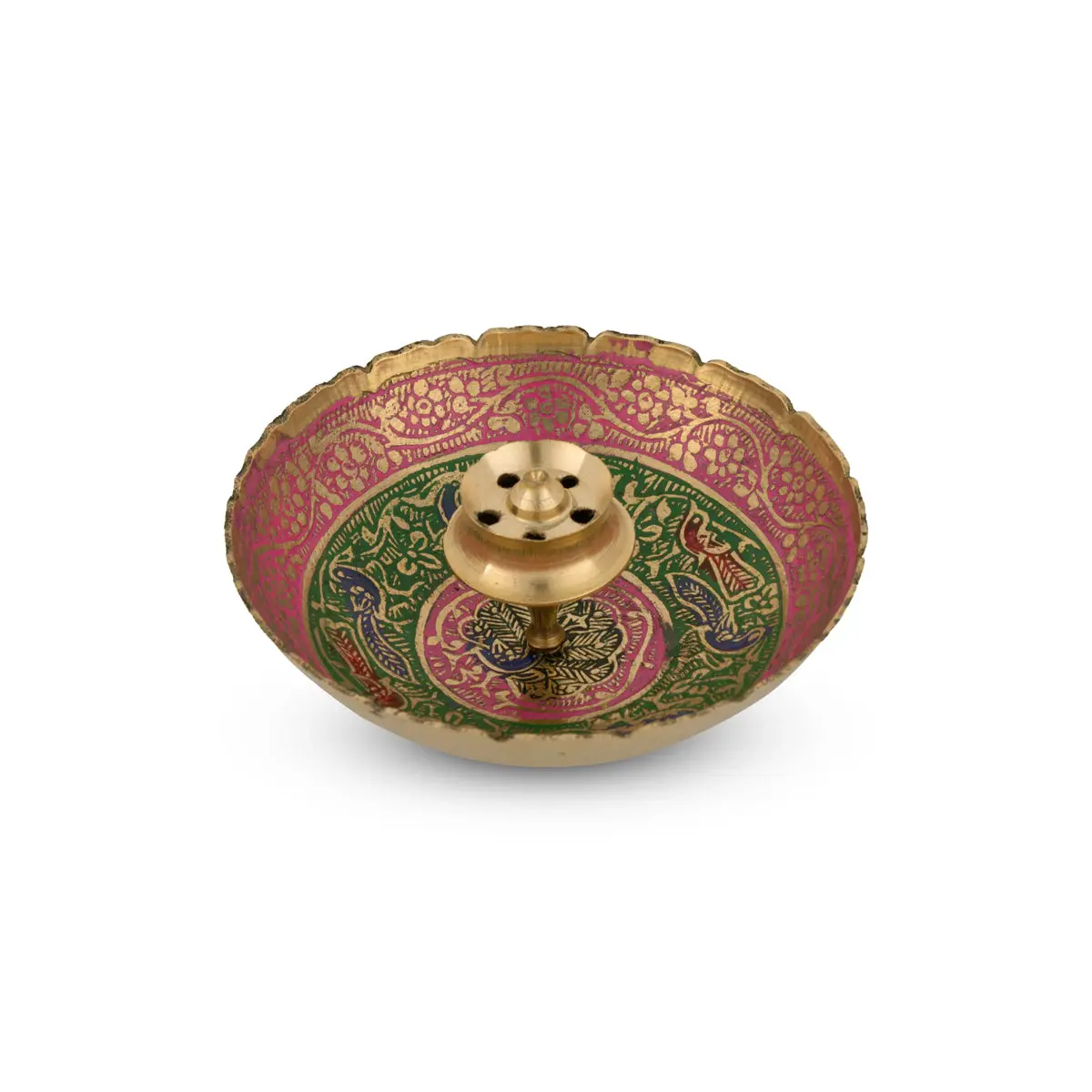 Agarbathi Stand With Bowl - 1.5 x 3.5 Inches | Brass Incense Stick Holder/ Agarbathi Holder for Pooja/ 40 Gms