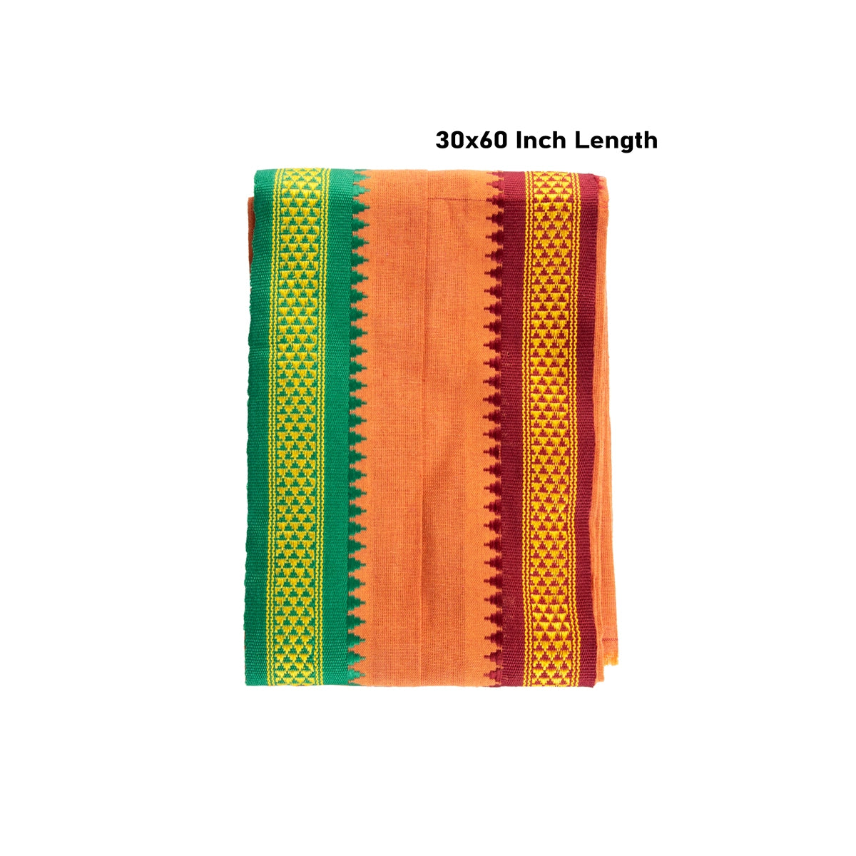 Angavastram - 30 x 60 Inches | Thalapathi Border Towel/ Kavi Colour Thundu for Men