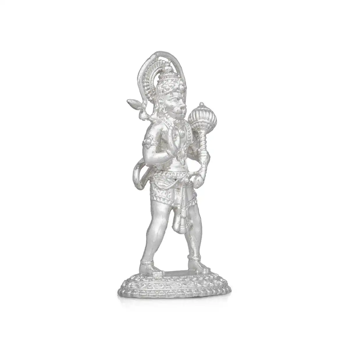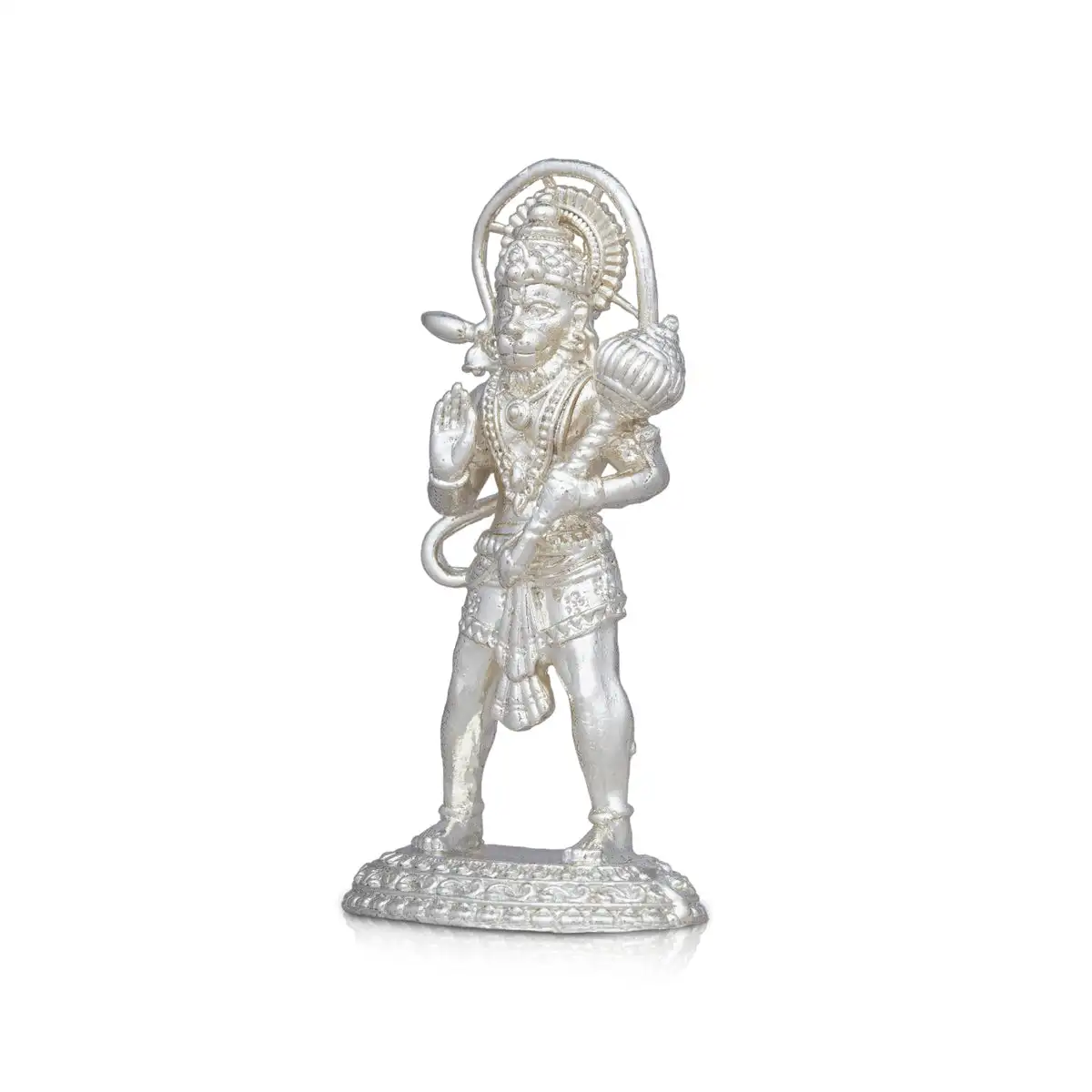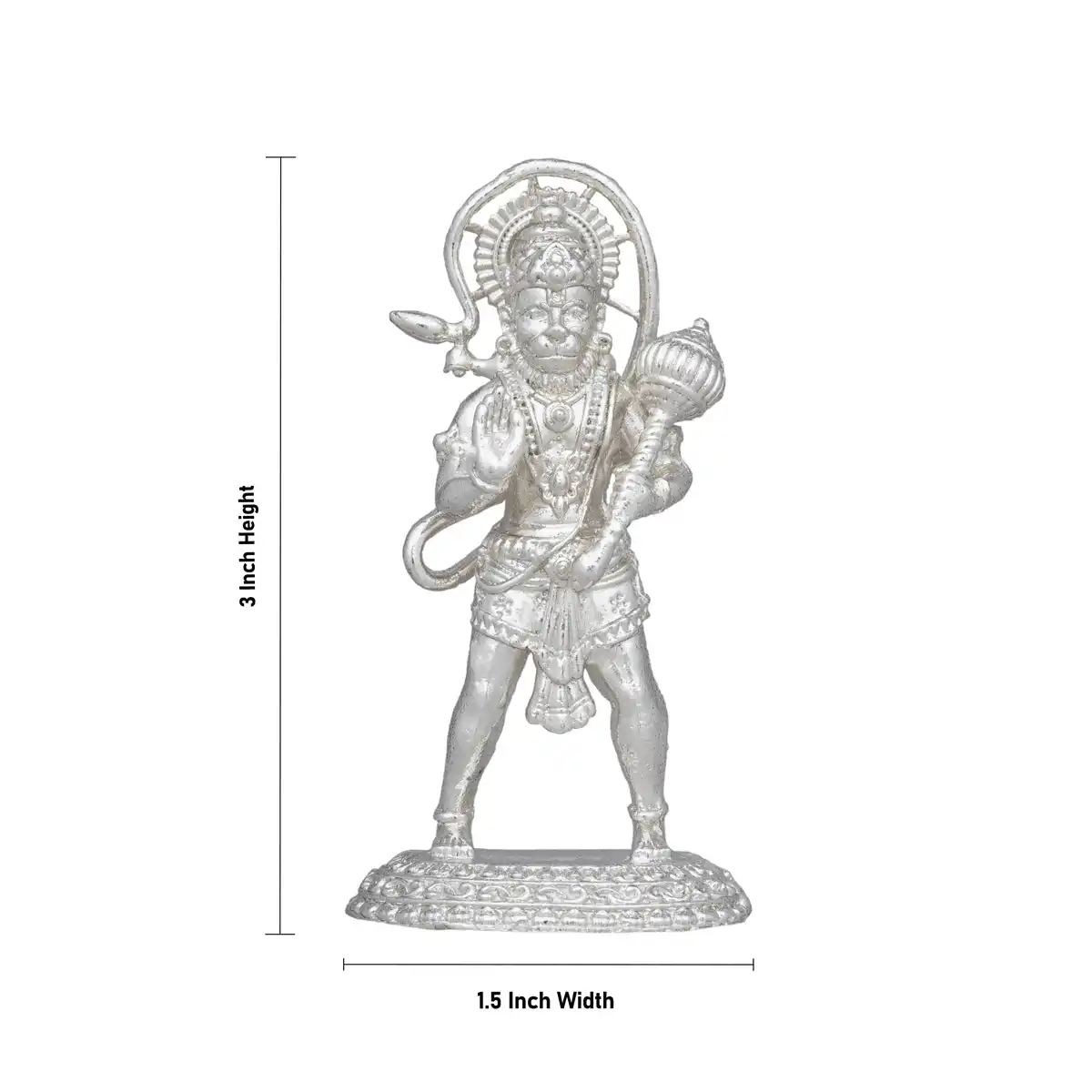 Anjaneya Statue - 3 x 1.5 Inches | Copper Idol/ Silver Polish Standing Hanuman Statue for Pooja/ 55 Gms Approx