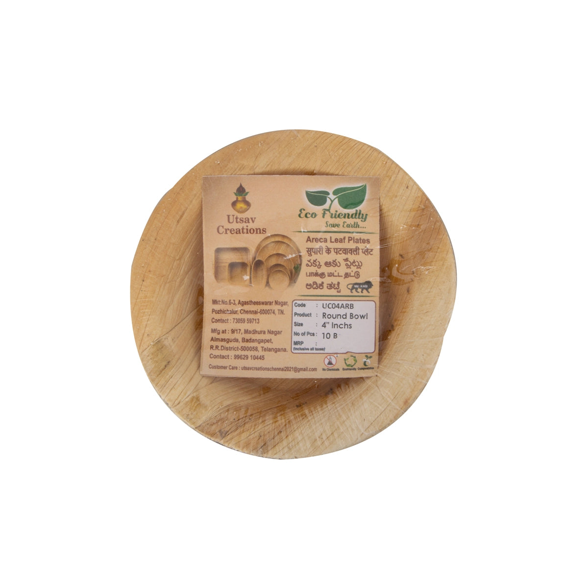 Areca Leaf Bowl Set - 4 Inches | 10 Pcs/ Round Palm Leaf Cup/ Disposable Bowl for Temple