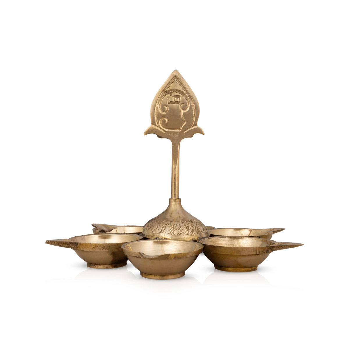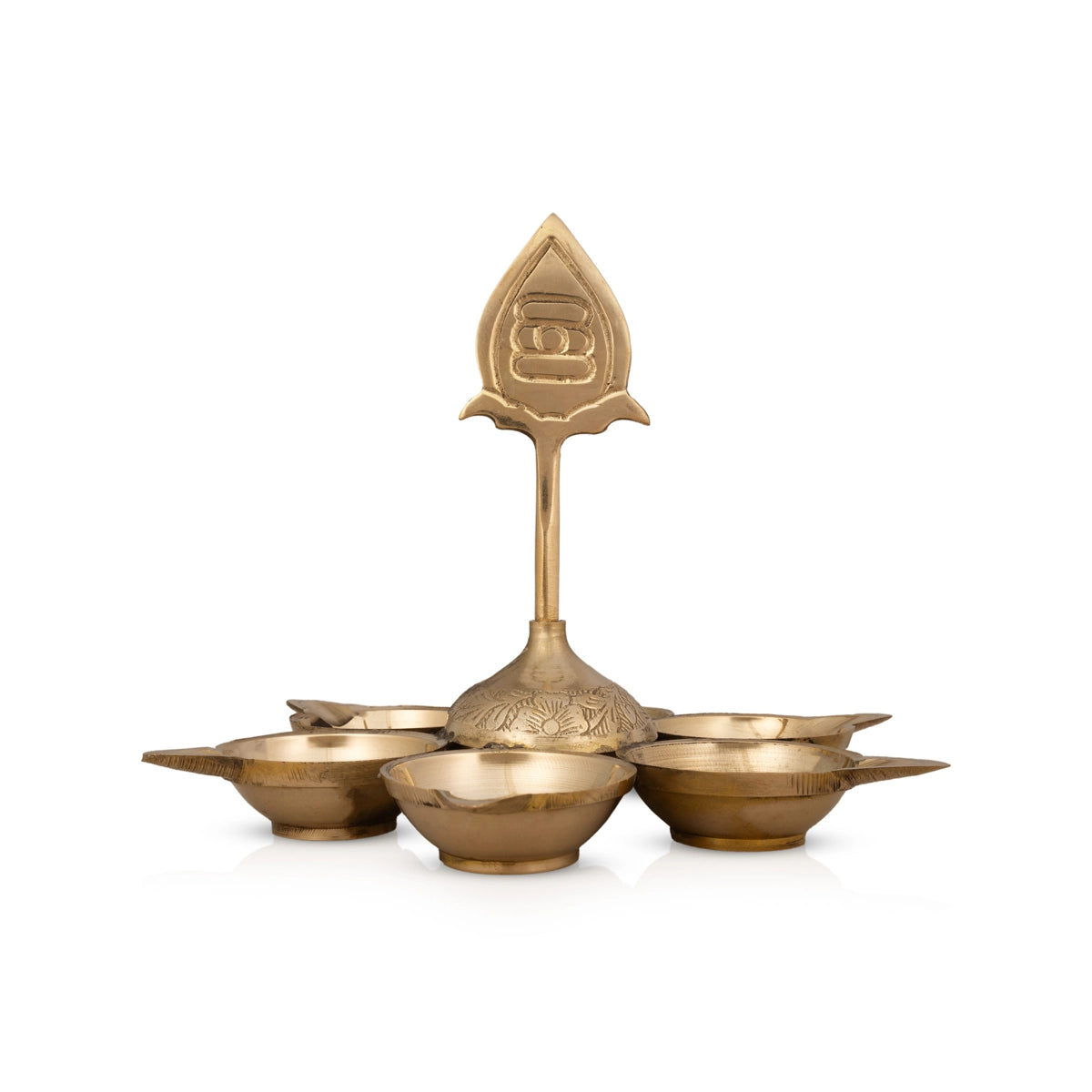 Home / Products / Decorative Lamp / Arupadai Murugan Vel Deepam - 5.5 x 7 Inches | Brass Lamp/ Brass Vilakku for Pooja/ 260 Gms Approx